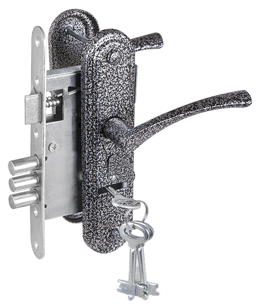 Ручки дверные на планке с замком под сувальдный ключ ЗЕНИТ ЗВ9-4-2 (серебро), 3кл.