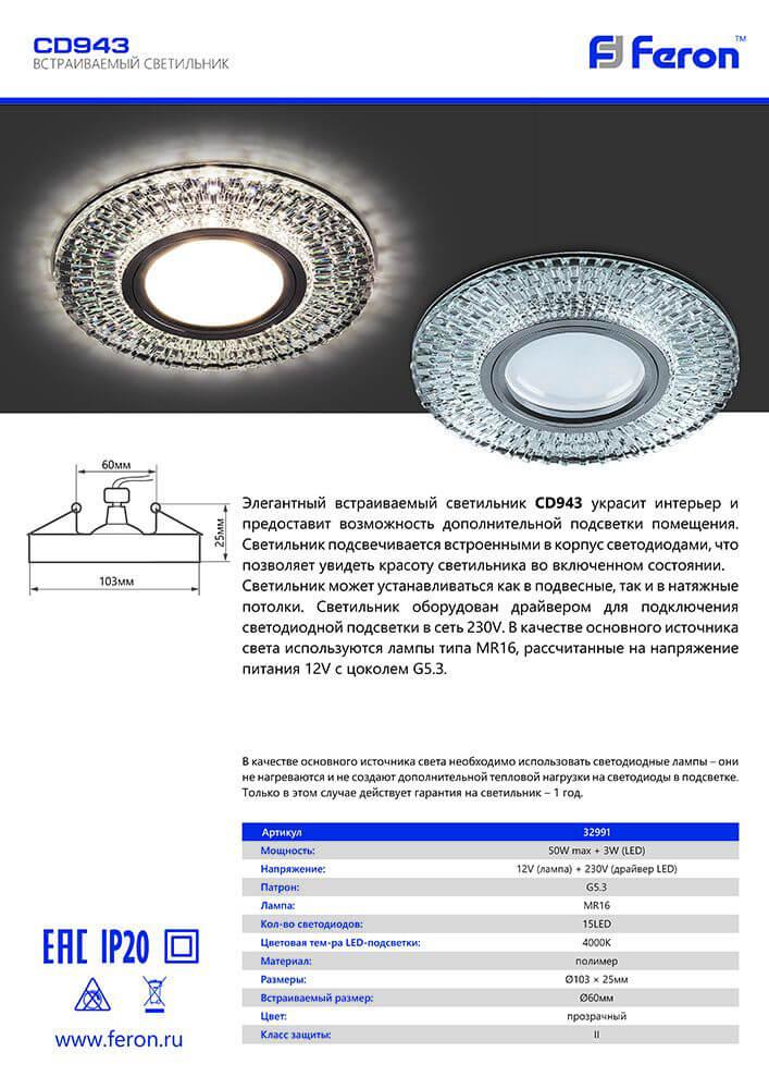 -Встраиваемый светильник Feron CD943 32991Потолочные светильники фигурныеАварийные светильникиПромышленные светильникиНакладные светильникиСветильники для растенийМебельные светильникиПотолочные светильникиСветодиодные панелиЛинейные светильникиПотолочные светильники прямоугольныеНастенно-потолочные светильникиНастенные светильникиПотолочные светильники круглыеПодвесные светильники