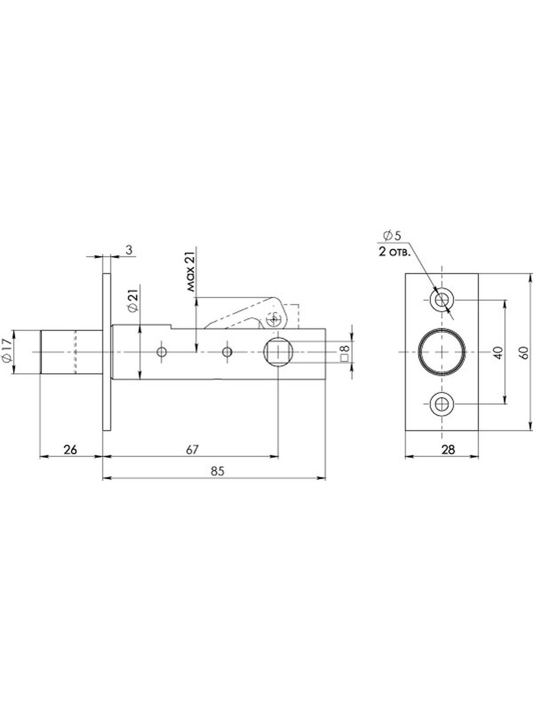 Задвижка дверная врезная Fuaro DB 867 CP (хром) 67мм