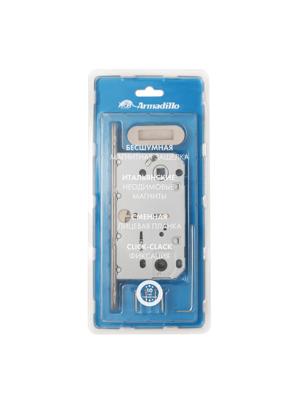 Магнитные защёлки Armadillo GRAVITY-PRO- это инновационная версия уже популярного механизма, представляющая собой модное дизайнерское направление. Предназначены для установки в деревянные, межкомнатные и сантехнические двери левого и правого открывания с толщиной полотна от 35 мм.Бесшумность работы достигается за счёт магнитного механизма, срабатывающего только при закрывании.Оригинальные итальянские неодимовые магниты препятствуют преждевременному размагничиванию.Форма ответной планки со скошенными краями обеспечивает отличное сцепление и плавное закрывание.Сменная лицевая планка скрывает установочные винты, придавая более эстетичный вид.Ответная планка имеет возможность фиксации «Click-Clack» без использования дополнительного крепления.Характеристики