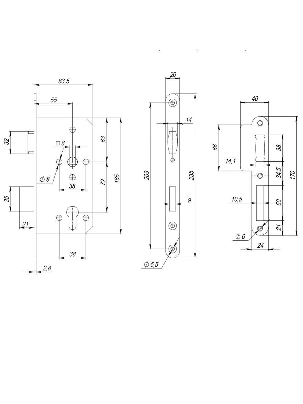 Замок Fuaro (Фуаро) врезной DD.INOX/C-55.72/R с роликовой защелкой (лиц.планка 20 мм)