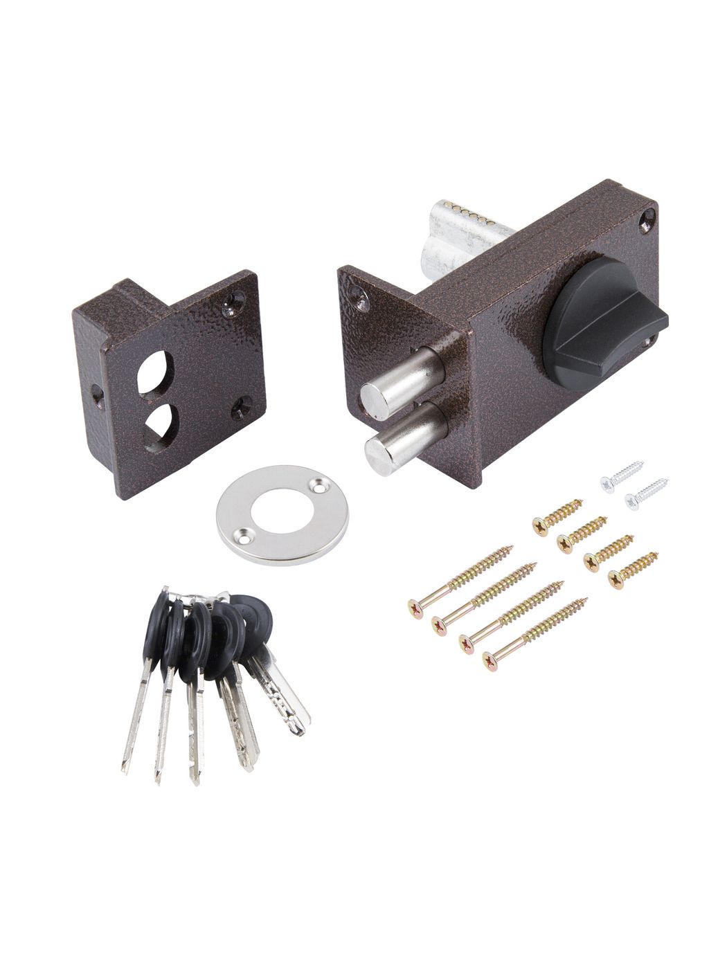Замок накладной цилиндровый ЗН1-8 КМЗ подходит для деревянных дверей. Металлический корпус окрашен в медный антик. Популярная модель накладного замка совместима по посадочным размерам с замками ЗН1-8 производства КЭМЗ Калуга. Укомплектован 5-ью ключами, запорной коробкой и накладкой.Характеристики