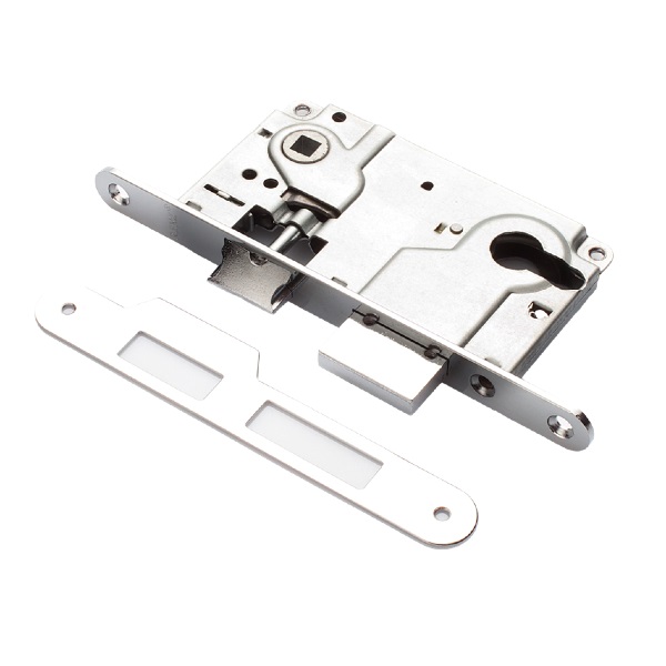 Замок дверной под цилиндр с ригелем RENZ INLBB 8550-2/1 CP 1 ригель и защ., с подш., хром бл.