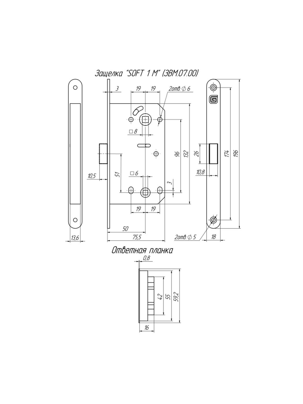 Защелка межкомнатная Soft 1М предназначена для установки в межкомнатные деревянные двери. Подходит для дверей правого и левого открывания (смена направления язычка осуществляется без разборки защелки). Магнитный язычок обеспечивает бесшумное открывание/закрывание двери. Межосевое расстояние 96 мм. Работоспособность 250 000 циклов. Ответная планка входит в комплектацию замка. Цвет: матовый никель.Характеристики