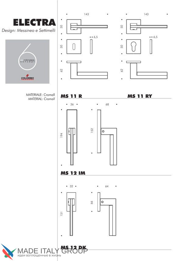 Дверная ручка на квадратном основании COLOMBO Electra MS11RSB-CM матовый хром