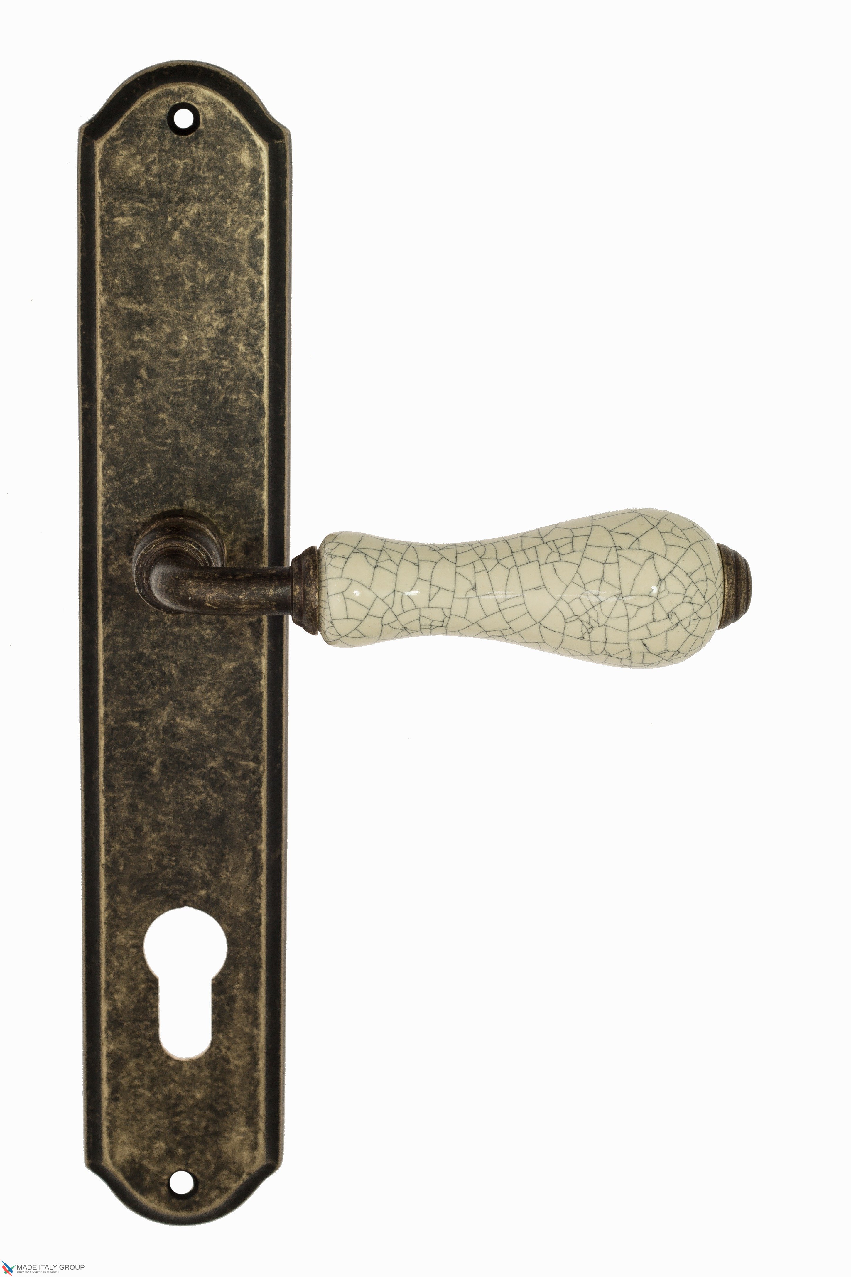 Дверная ручка Venezia "COLOSSEO" белая керамика паутинка CYL на планке PL02 античная бронза