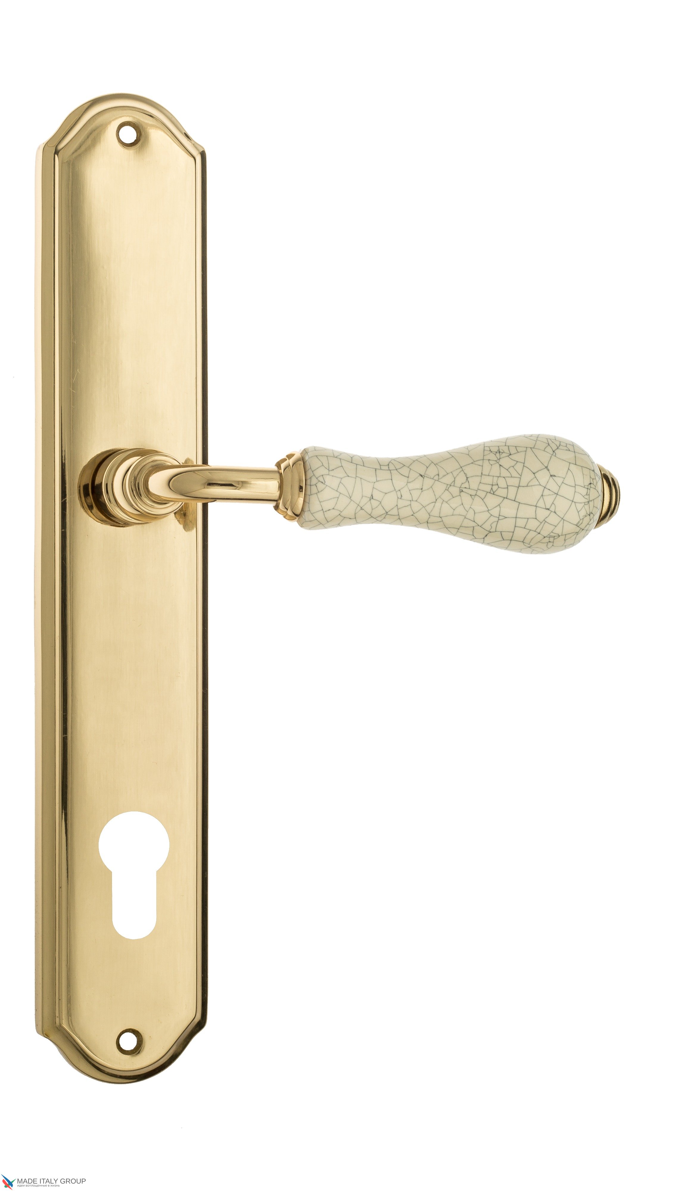 Дверная ручка Venezia "COLOSSEO" белая керамика паутинка CYL на планке PL02 полированная латунь