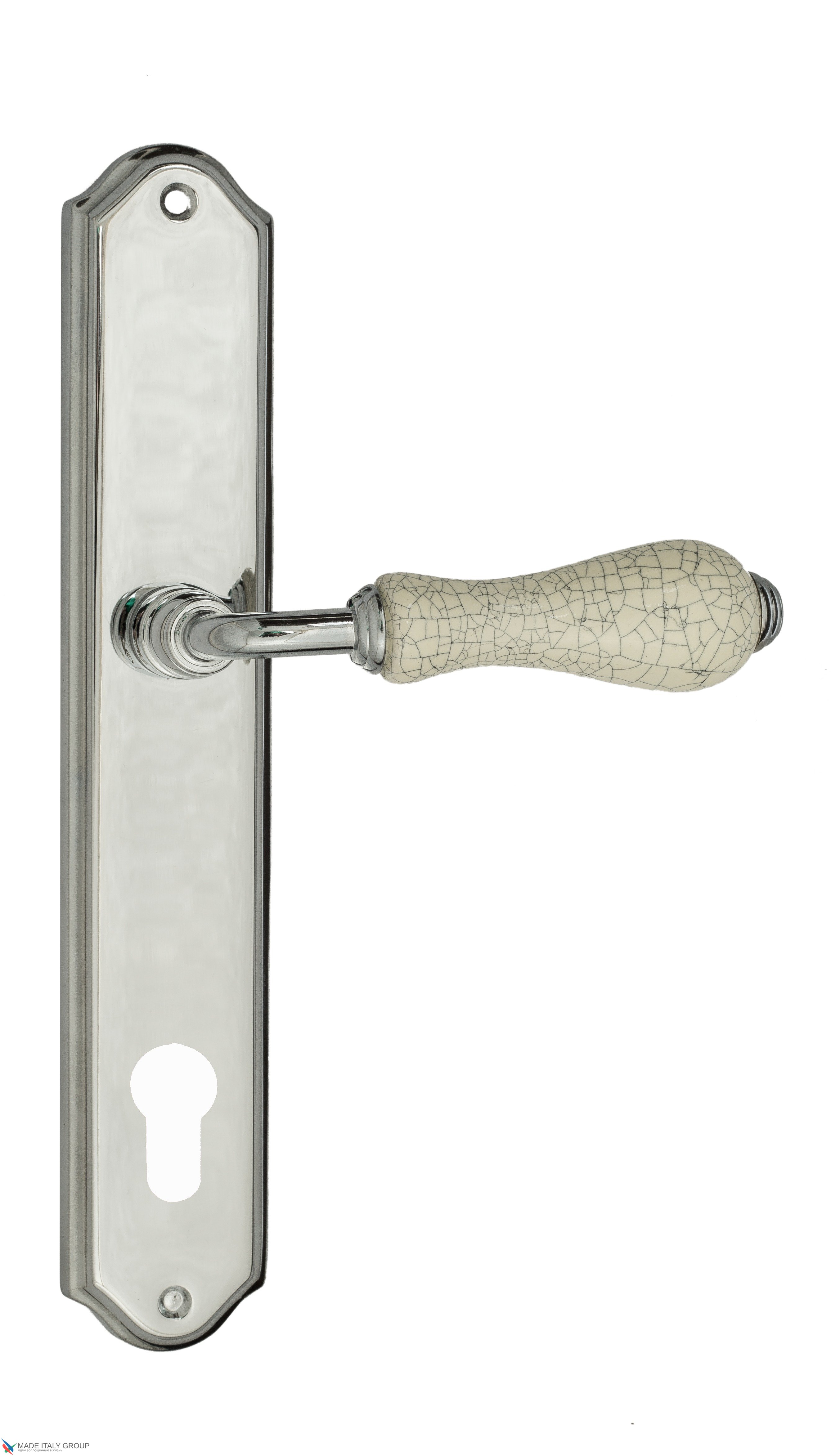 Дверная ручка Venezia "COLOSSEO" белая керамика паутинка CYL на планке PL02 полированный хром