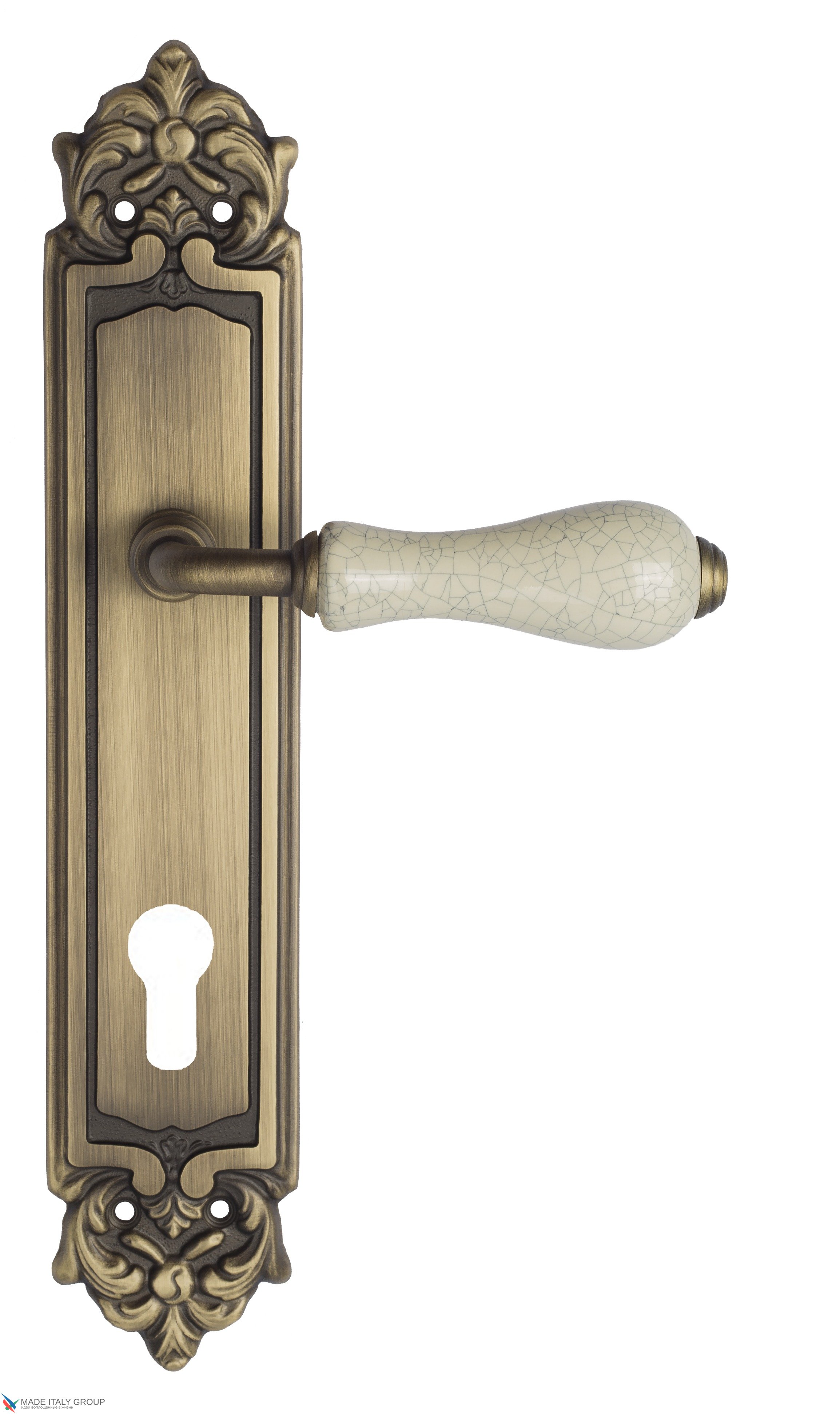 Дверная ручка Venezia "COLOSSEO" белая керамика паутинка CYL на планке PL96 матовая бронза