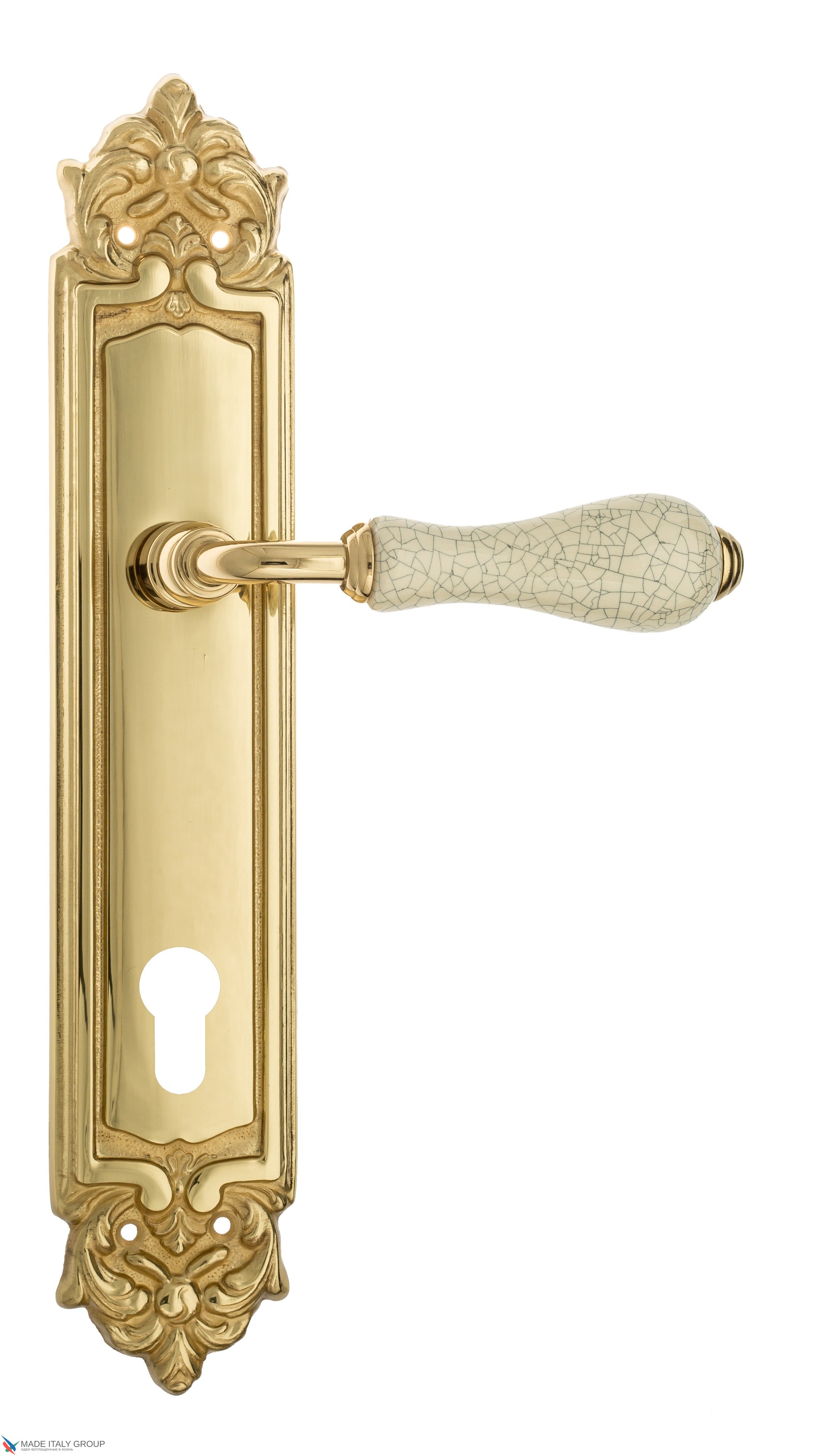 Дверная ручка Venezia "COLOSSEO" белая керамика паутинка CYL на планке PL96 полированная латунь