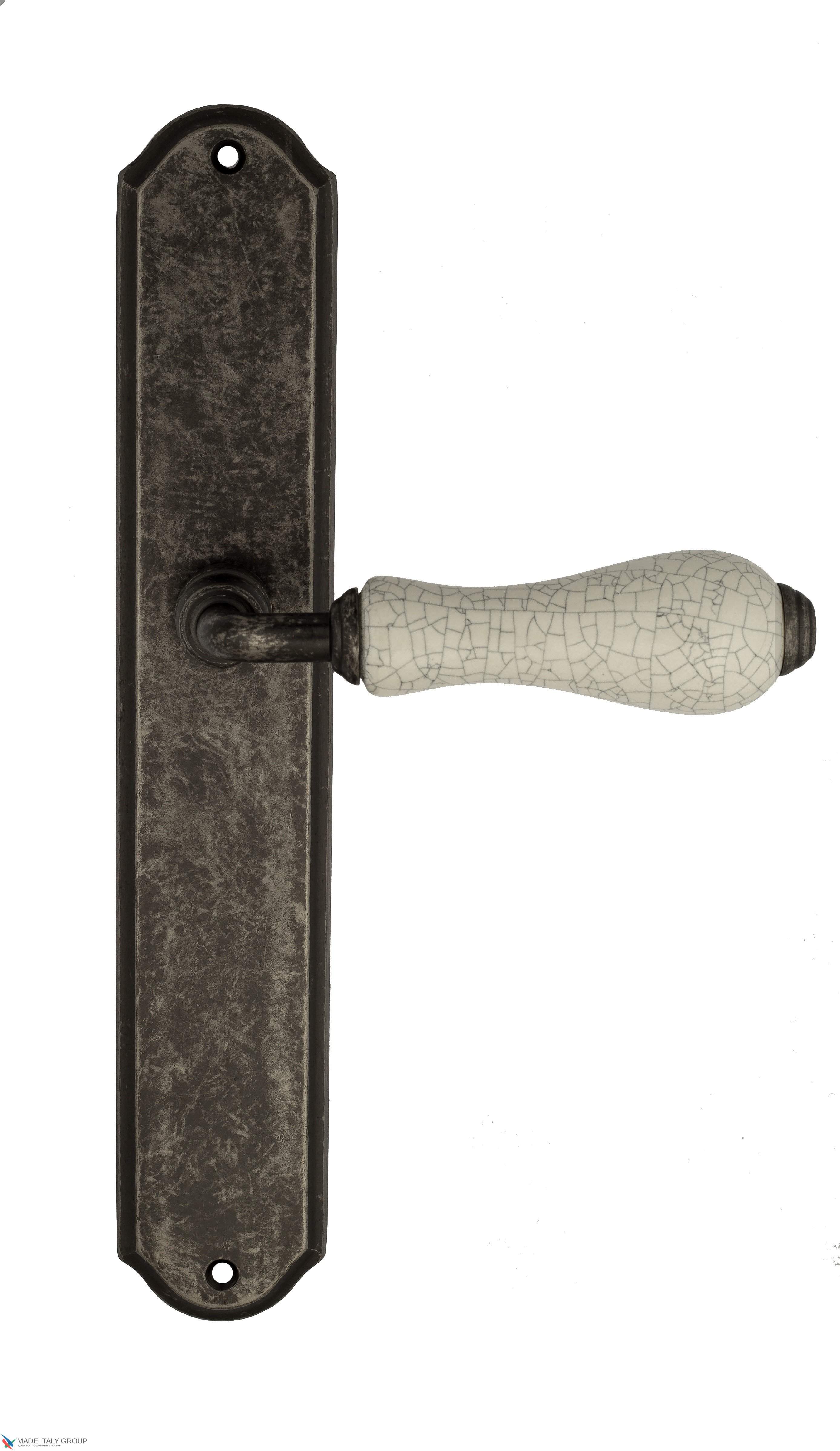 Дверная ручка Venezia "COLOSSEO" белая керамика паутинка на планке PL02 античное серебро