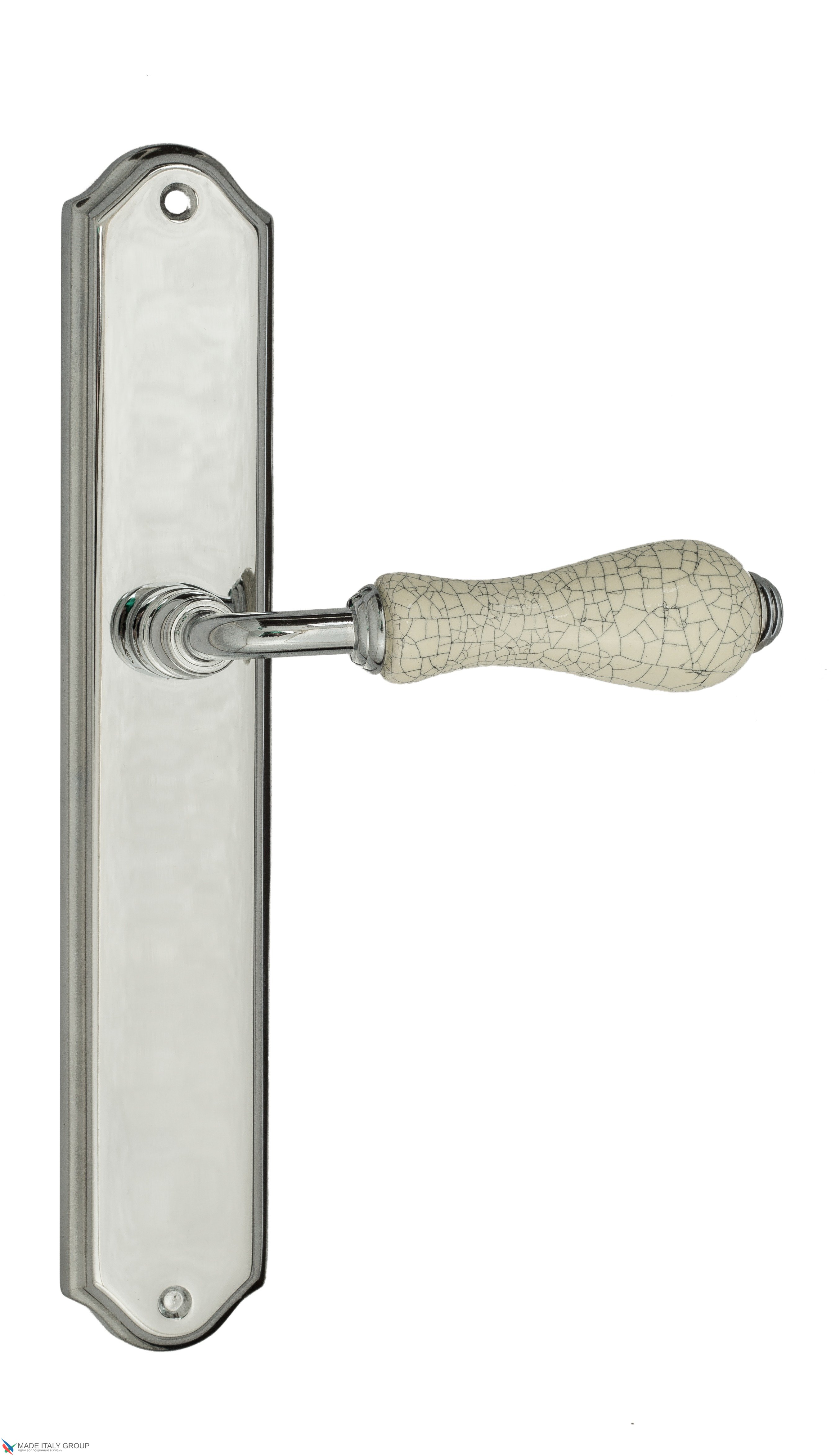 Дверная ручка Venezia "COLOSSEO" белая керамика паутинка на планке PL02 полированный хром