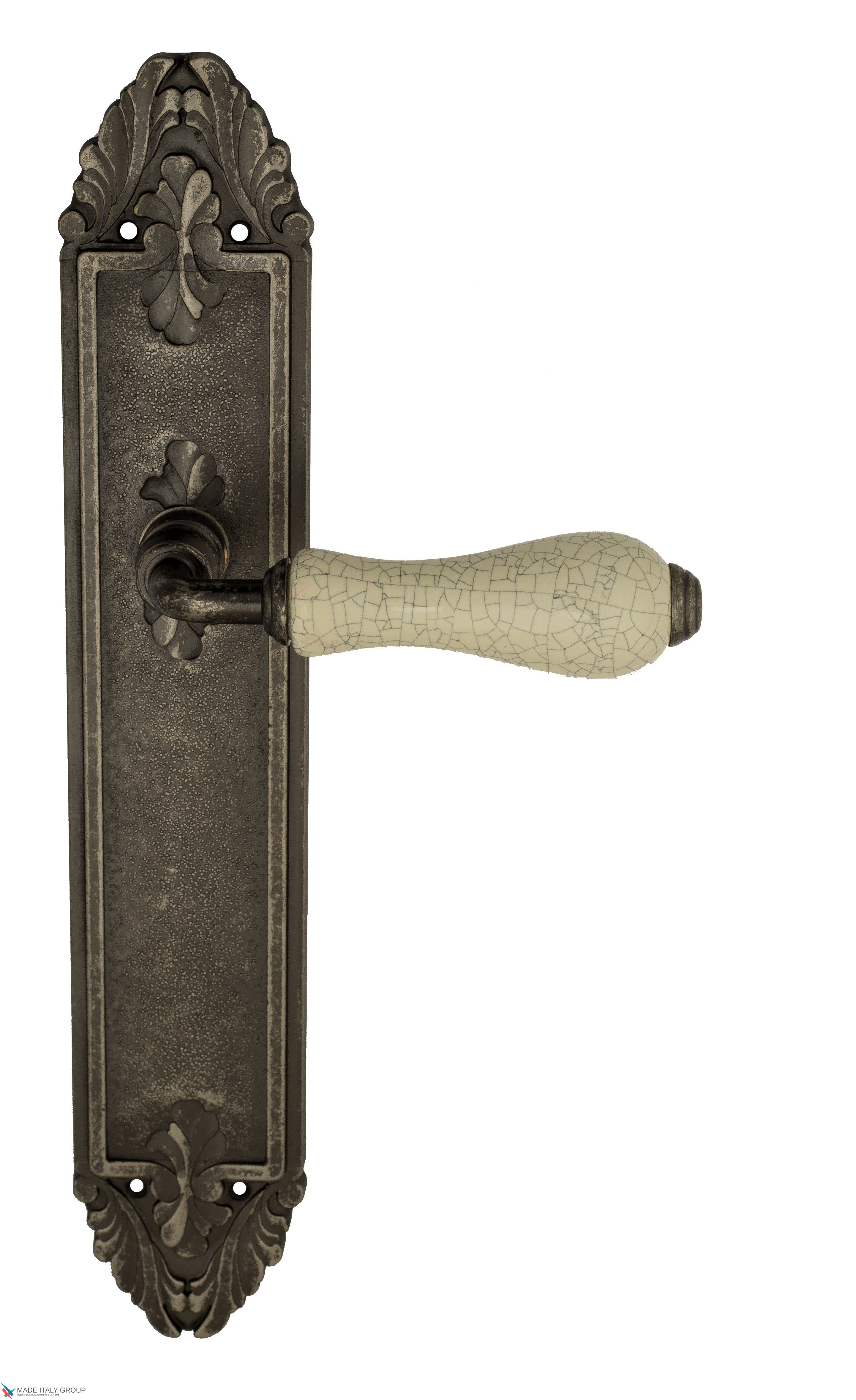 Дверная ручка Venezia "COLOSSEO" белая керамика паутинка на планке PL90 античное серебро
