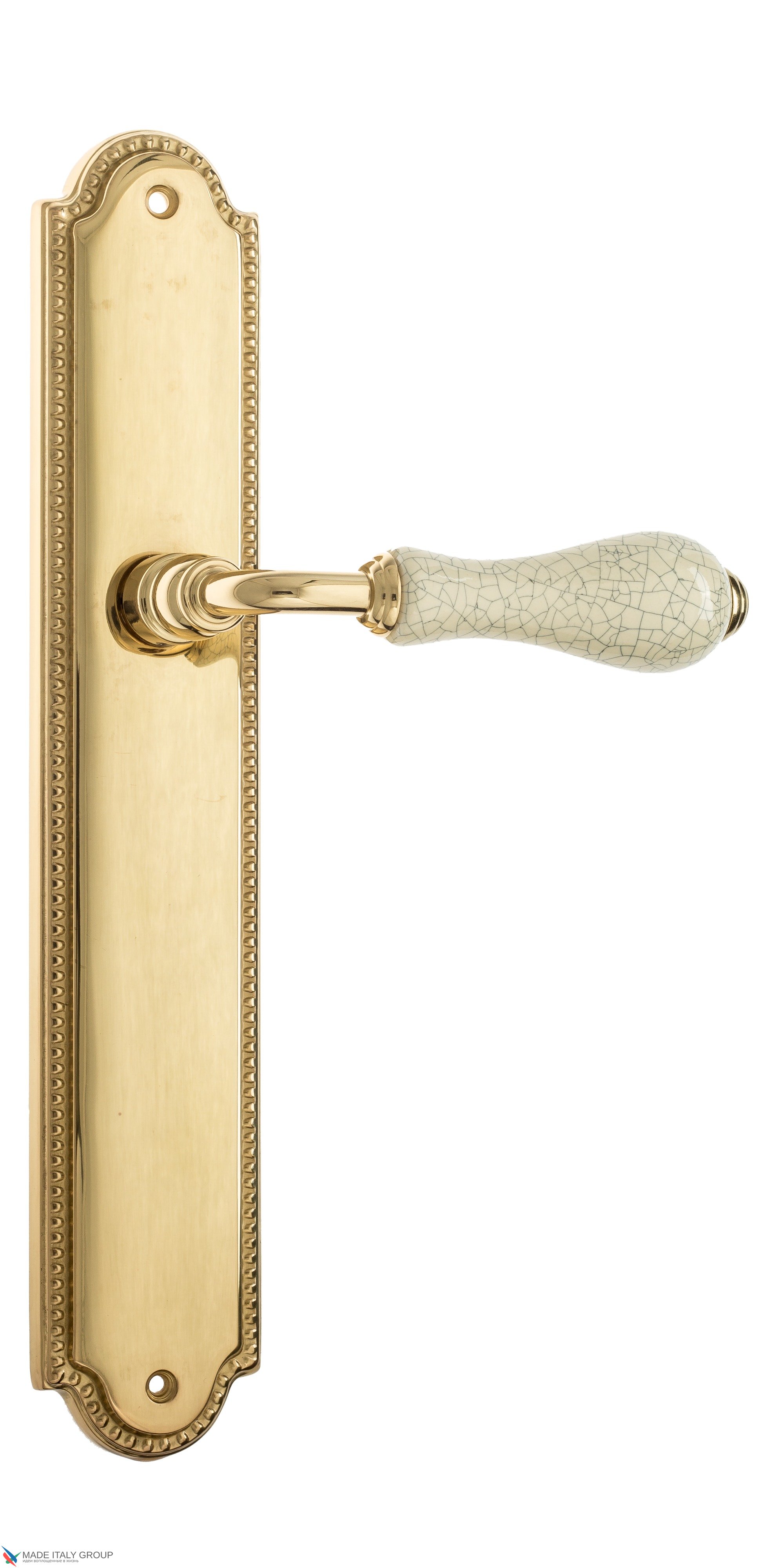 Дверная ручка Venezia "COLOSSEO" белая керамика паутинка на планке PL98 полированная латунь