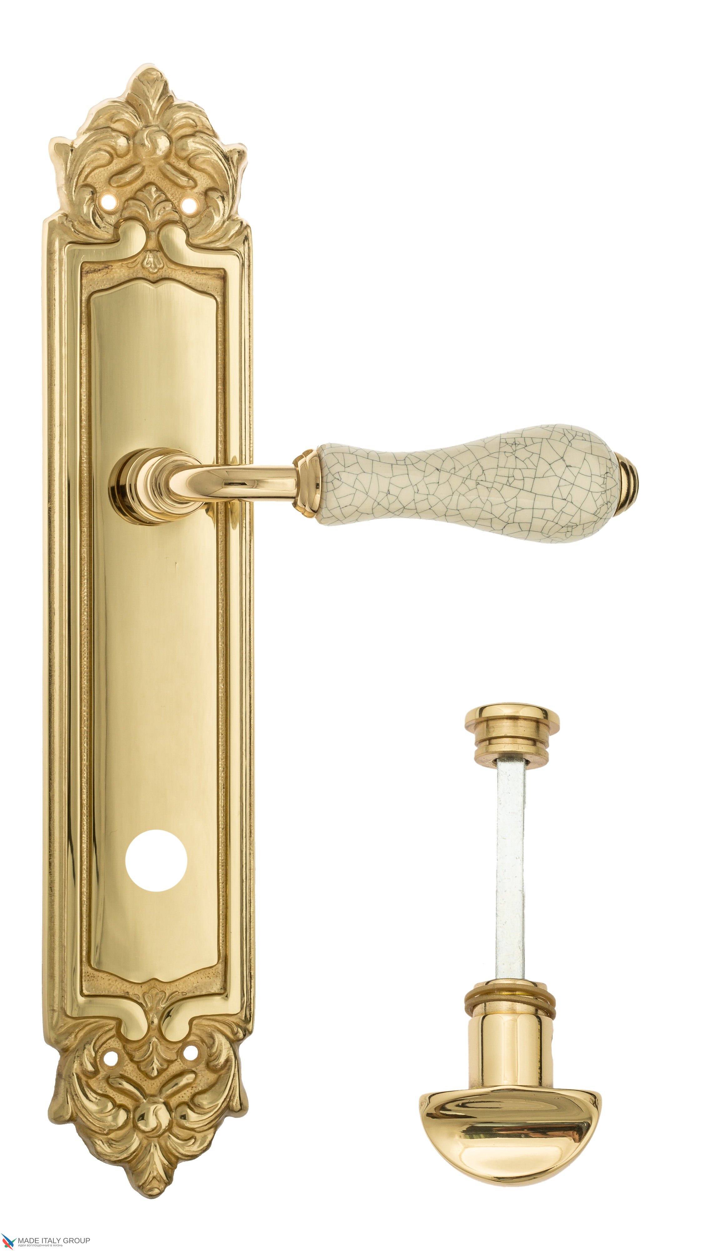 Дверная ручка Venezia "COLOSSEO" белая керамика паутинка WC-2 на планке PL96 полированная латунь