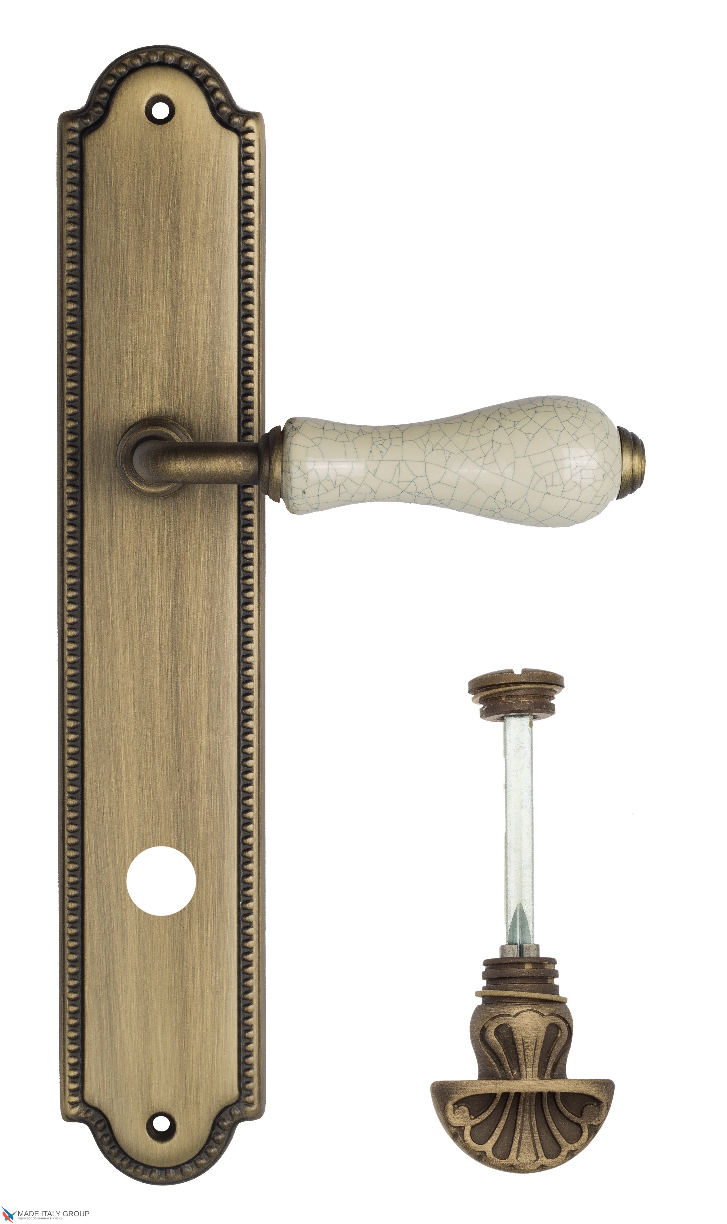 Дверная ручка Venezia "COLOSSEO" белая керамика паутинка WC-4 на планке PL98 матовая бронза