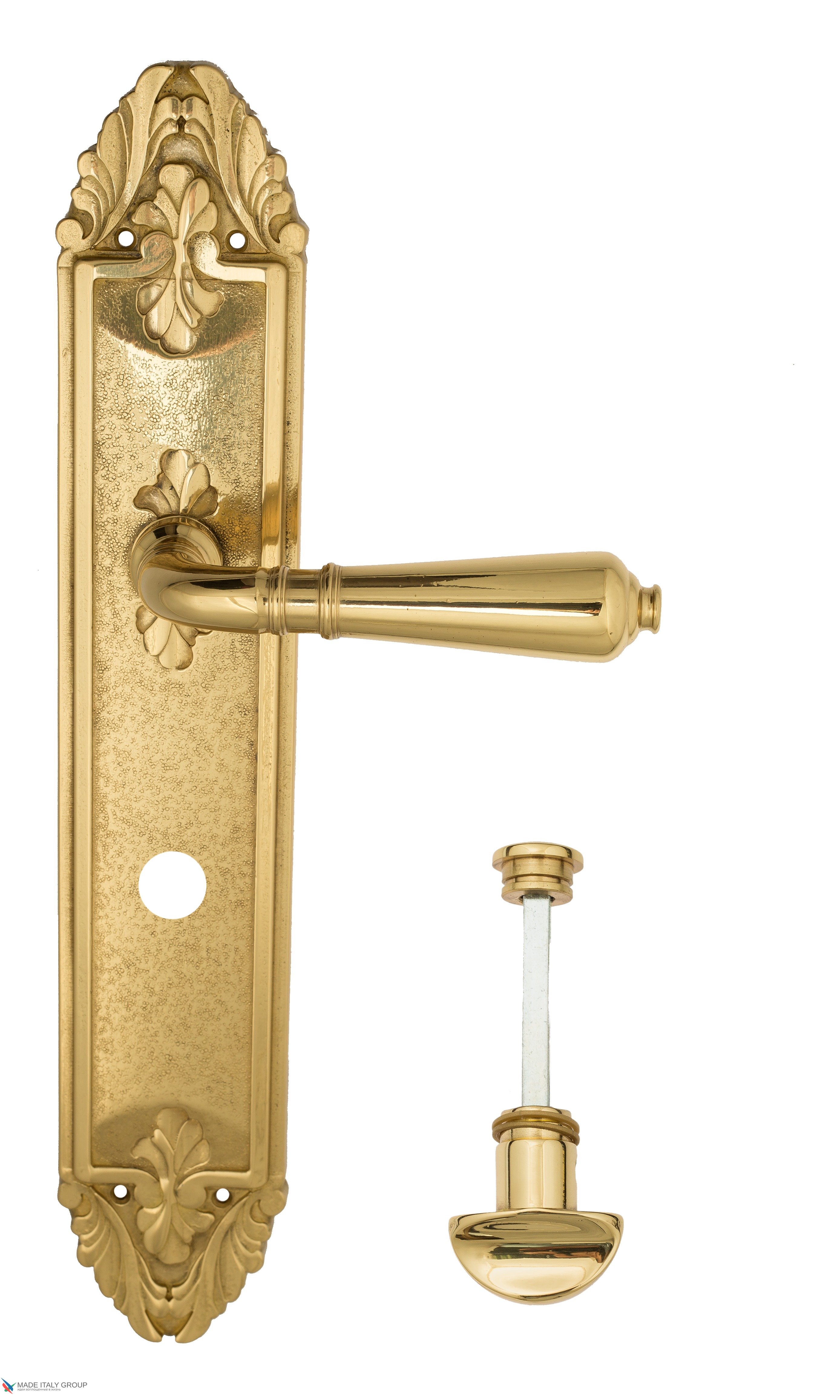Дверная ручка Venezia "VIGNOLE" WC-2 на планке PL90 полированная латунь
