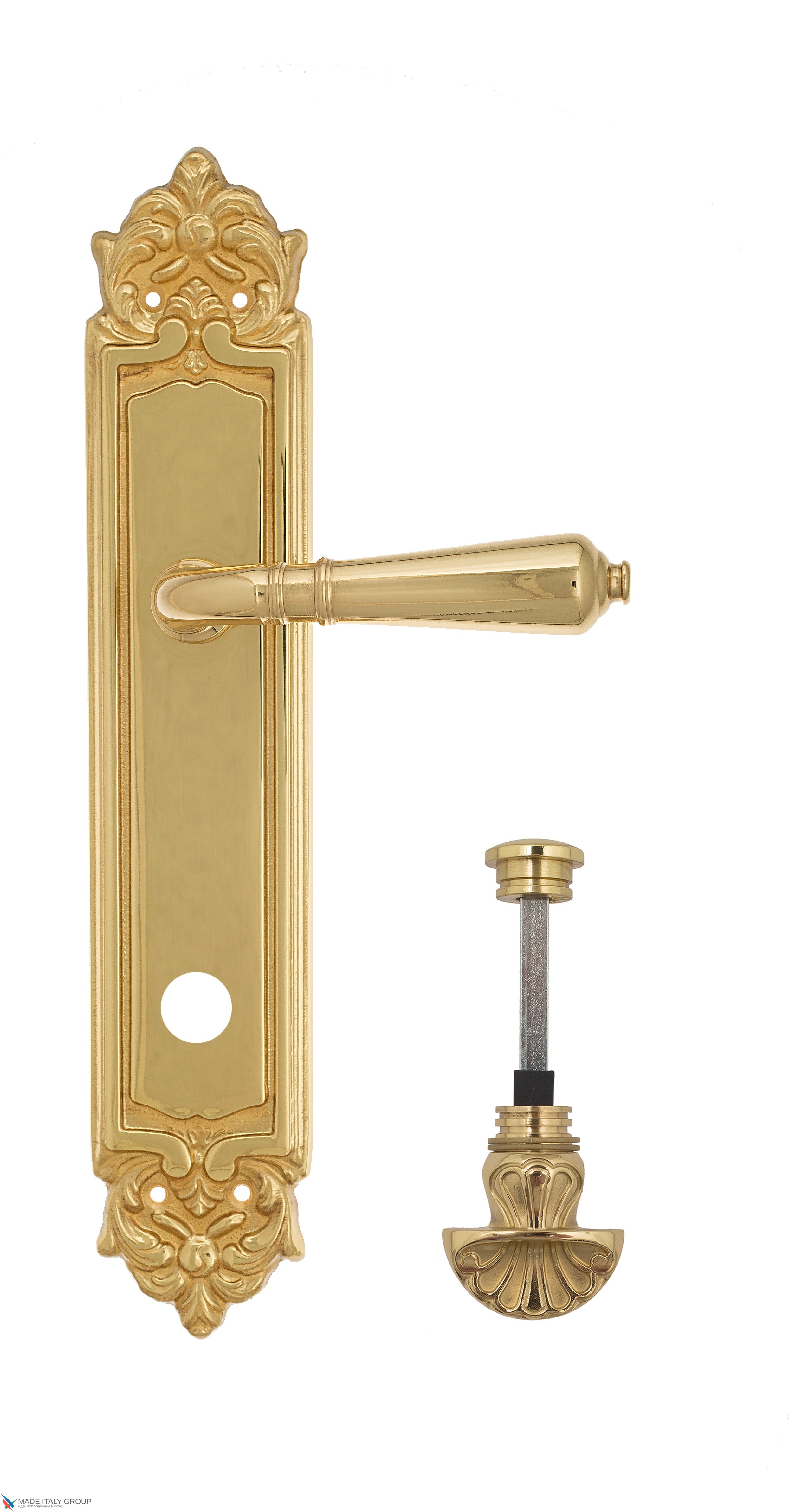 Дверная ручка Venezia "VIGNOLE" WC-4 на планке PL96 полированная латунь