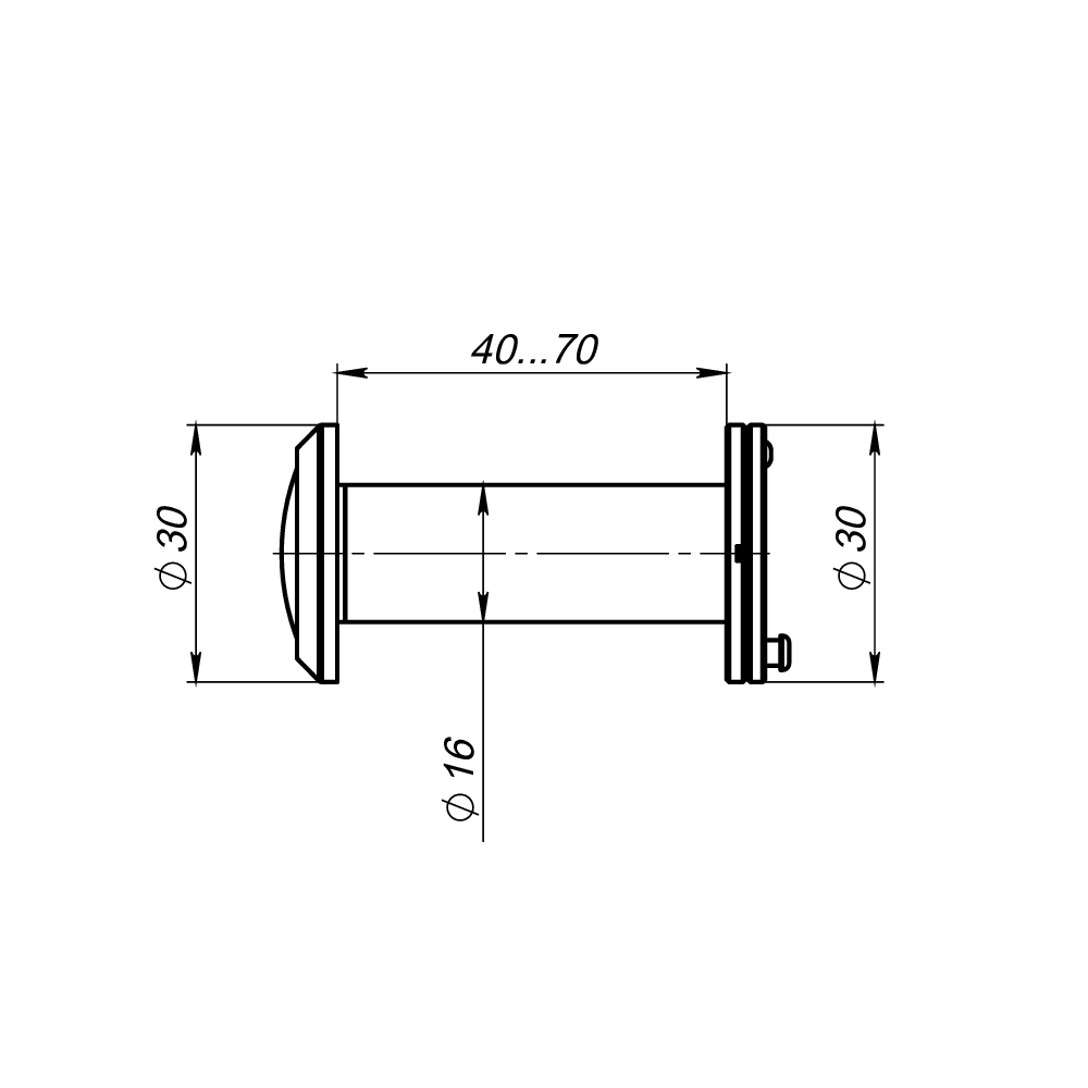 Глазок дверной, оптика пластик DV-1A/40-70 CP хром (кратно коробке 45 шт)