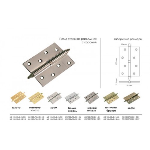 Комплект 10 шт. - Петля дверная разъемная стальная с короной левая Morelli MS 100X70X2.5 L PC хром