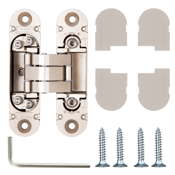 Универсальные петли Armadillo UNIVERSAL 3D-ACH 40 из коллекции URBAN - эксклюзивная разработка компании - подходят для дверей с левым и правым открыванием.Невидимы на закрытой двери и обеспечивают угол открывания до 180 градусов. Бесшумны и плавны в работе за счёт нейлоновых вставок на подвижной части конструкции. Легко регулируются в трех плоскостях уже после завершения монтажа.Петля скрытой установки с 3D-регулировкой предназначена для скрытой установки в межкомнатные двери толщиной от 30 мм. Рассчитана на нагрузку до 40 кг при установке двух петель. Декоративные накладки в цвет петли входят в комплект. Петли UNIVERSAL 3D-ACH 40 Armadillo представлены в широкой цветовой палитре. Идеально сочетаются с фурнитурой Armadillo в аналогичных цветах.Характеристики