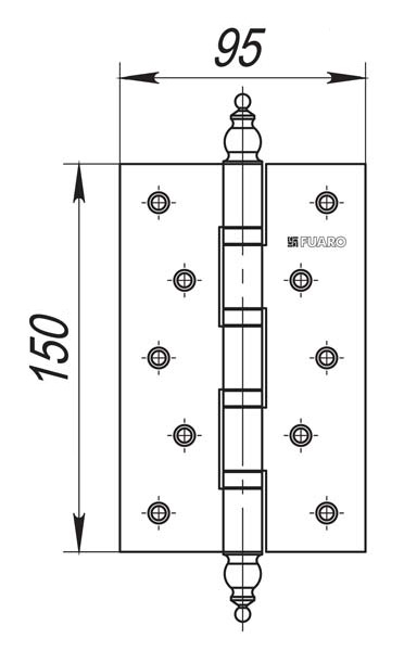 Комплект 8 шт. - Петля дверная стальная универсальная Fuaro 4BB/E 150x95x3 PB (латунь)