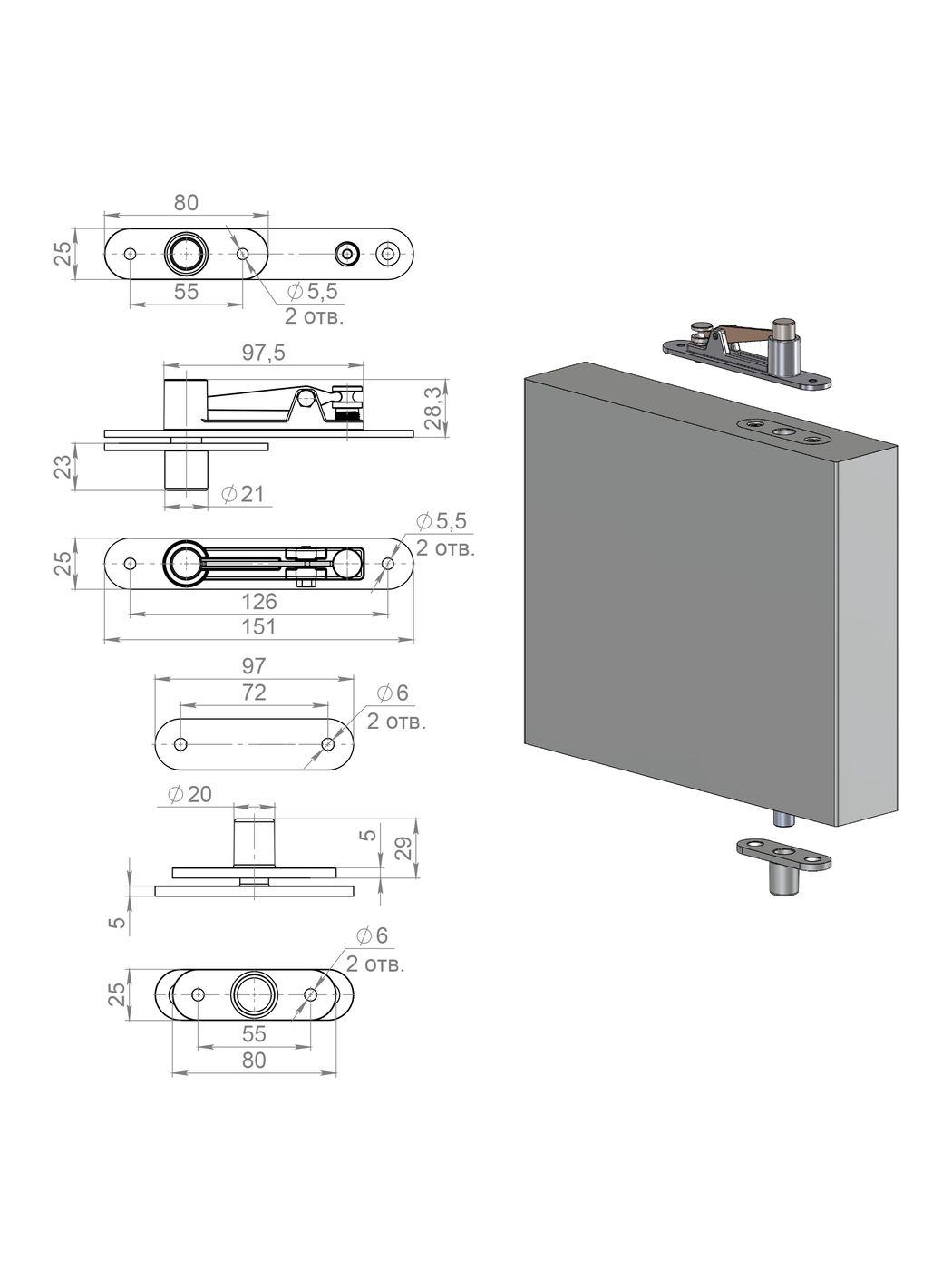 Комплект Armadillo (Армадилло) для маятниковых дверей Pivot.100