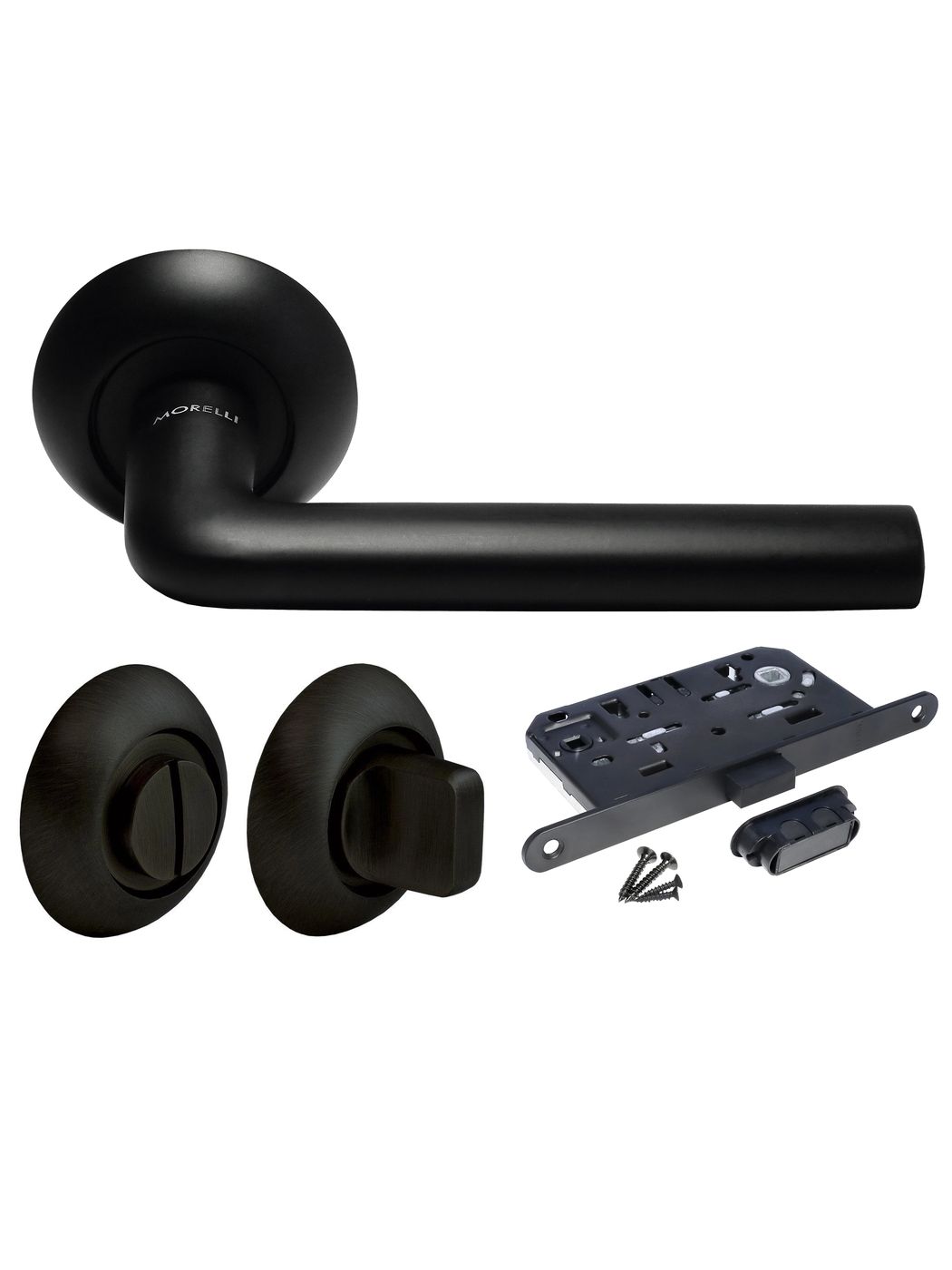 Комплект дверных ручек Morelli MH-03 BL с заверткой MH-WC BL + магнитный замок M1895 BL, цвет черный