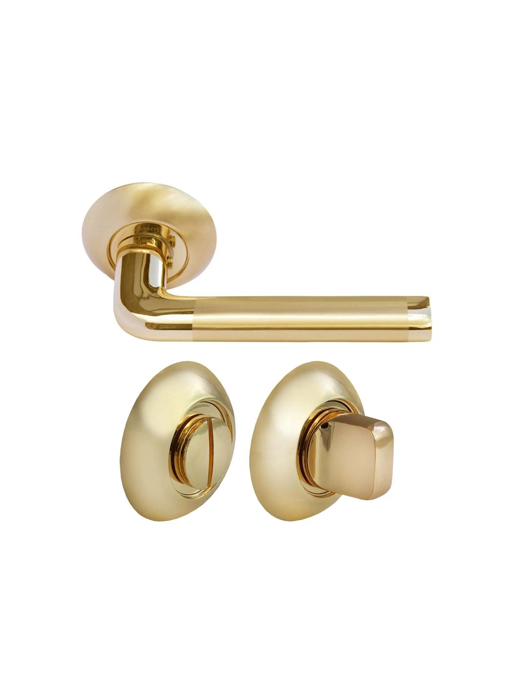 Комплект дверных ручек Morelli MH-03 SG/GP с заверткой MH-WC SG/GP, цвет матовое золото