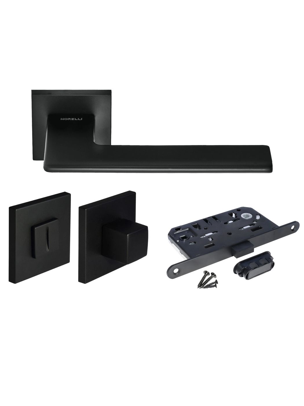 Комплект дверных ручек Morelli MH-51-S6 BL с заверткой MH-WC-S6 BL + магнитный замок M1895 BL, цвет черный