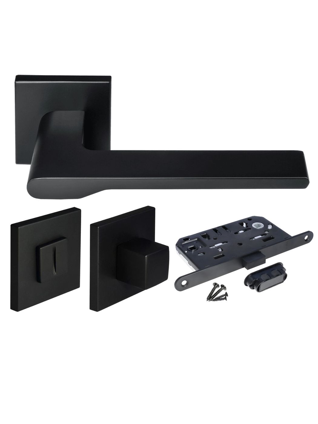 Комплект дверных ручек Morelli MH-53-S6 BL с заверткой MH-WC-S6 BL + магнитный замок M1895 BL, цвет черный