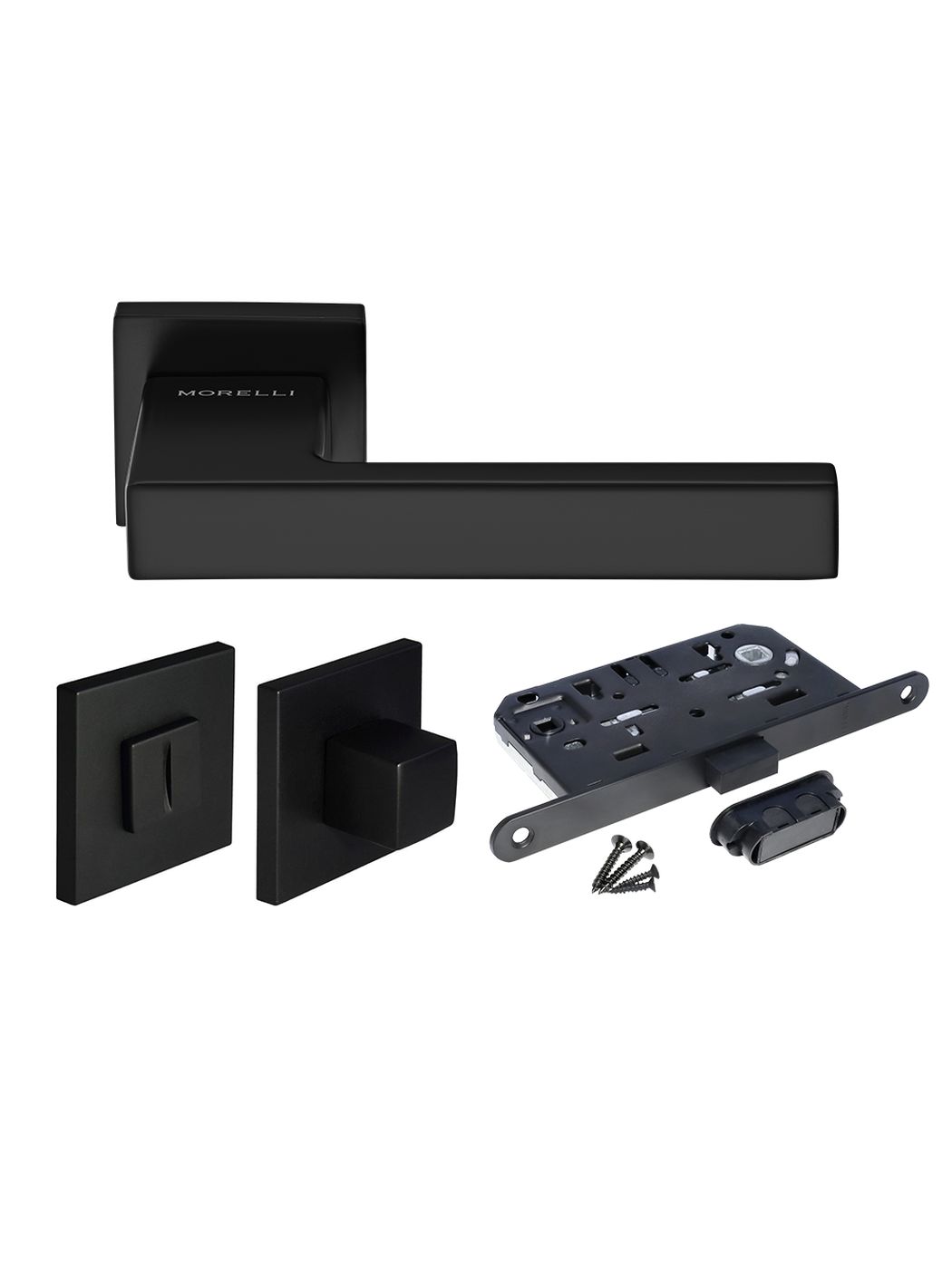 Комплект дверных ручек Morelli MH-56-S6 BL с заверткой MH-WC-S6 BL + магнитный замок M1895 BL, цвет черный