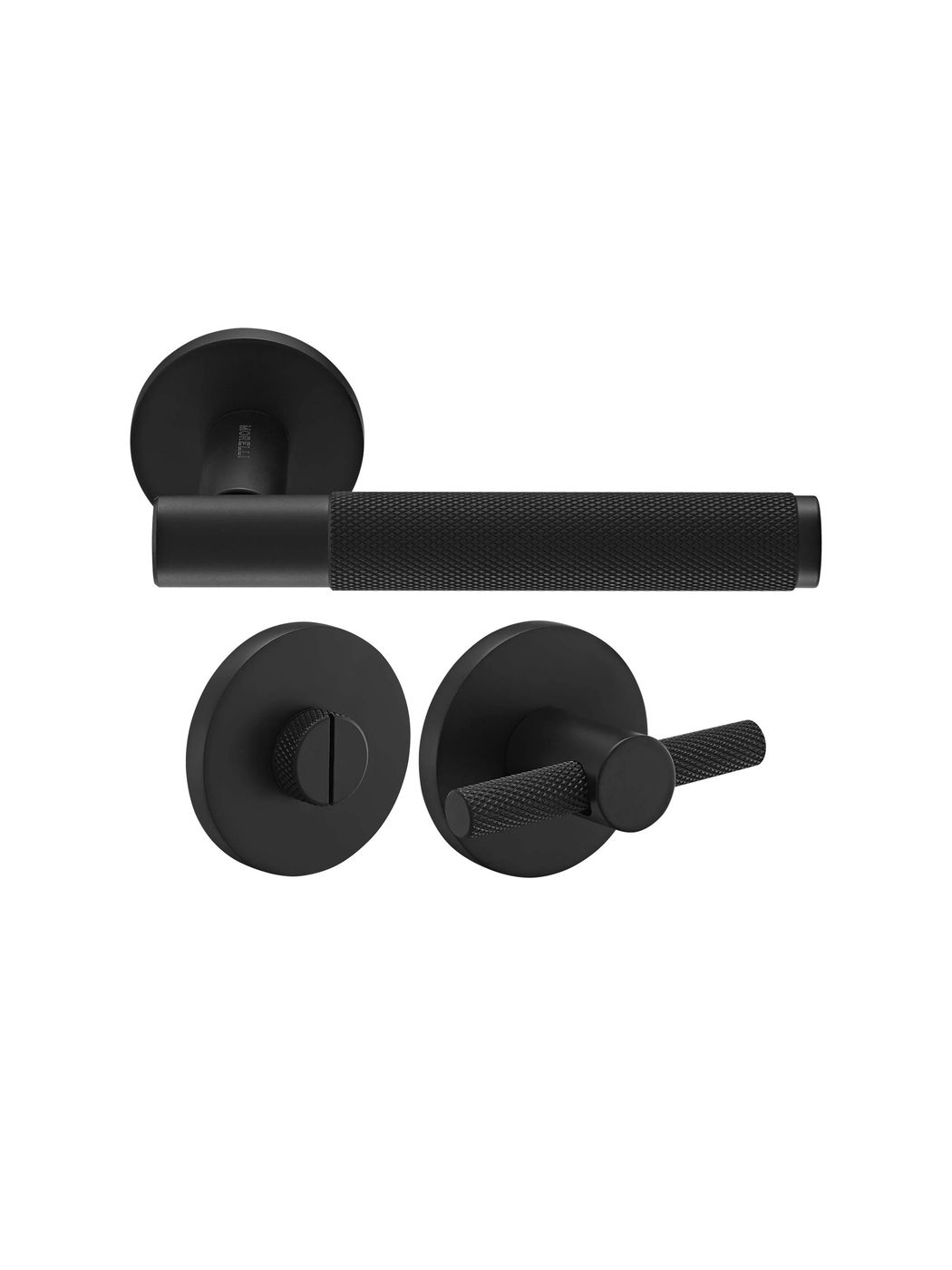 Комплект дверных ручек Morelli MH-57-R6T BL с заверткой MH-WC-R6T BL, цвет черный