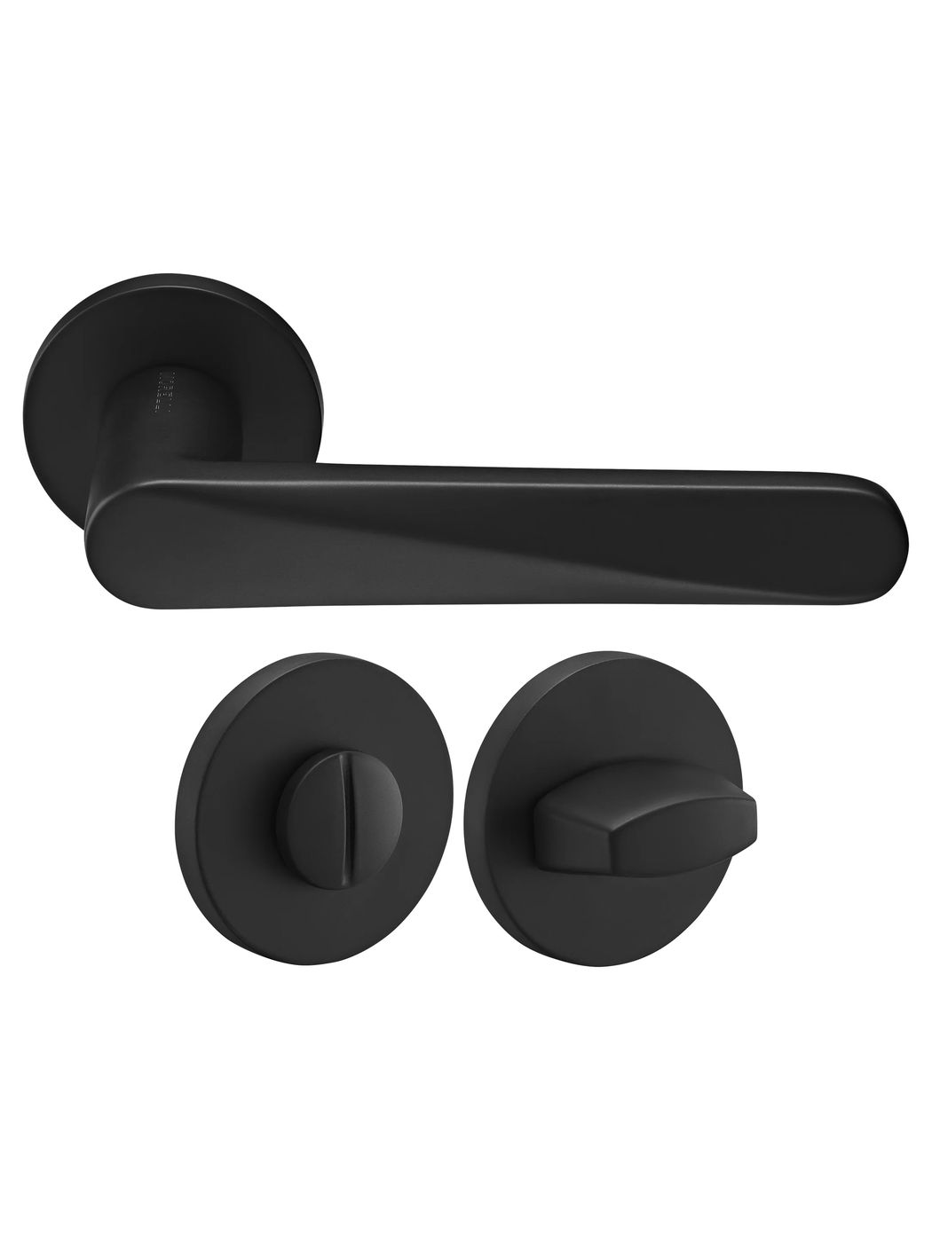 Комплект дверных ручек Morelli MH-58-R6 BL с заверткой MH-WC-R6 BL, цвет черный