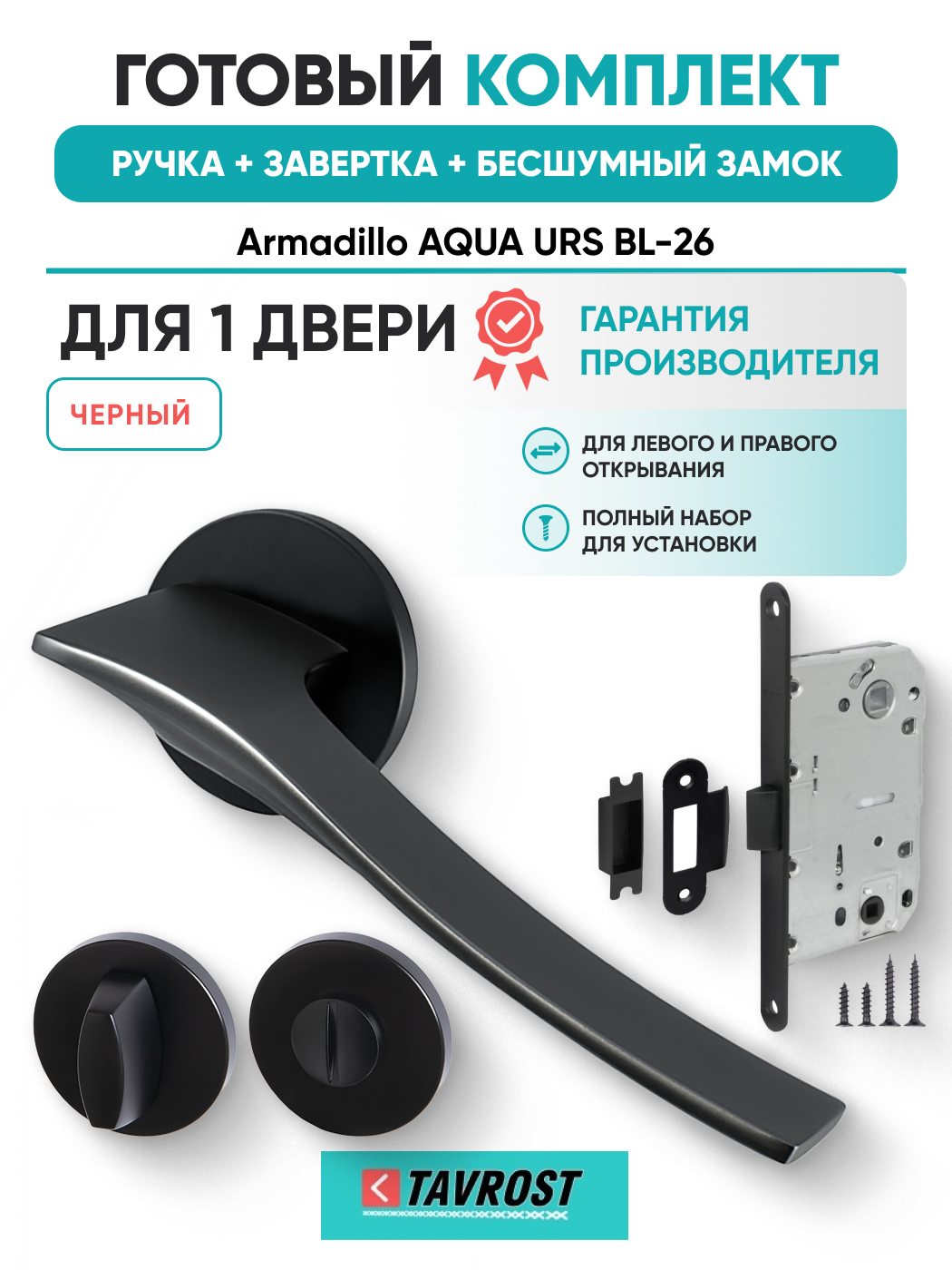 Комплект: Ручки Armadillo AQUA URS BL-26+Завертка+Бесшумный замок Fuaro/черный