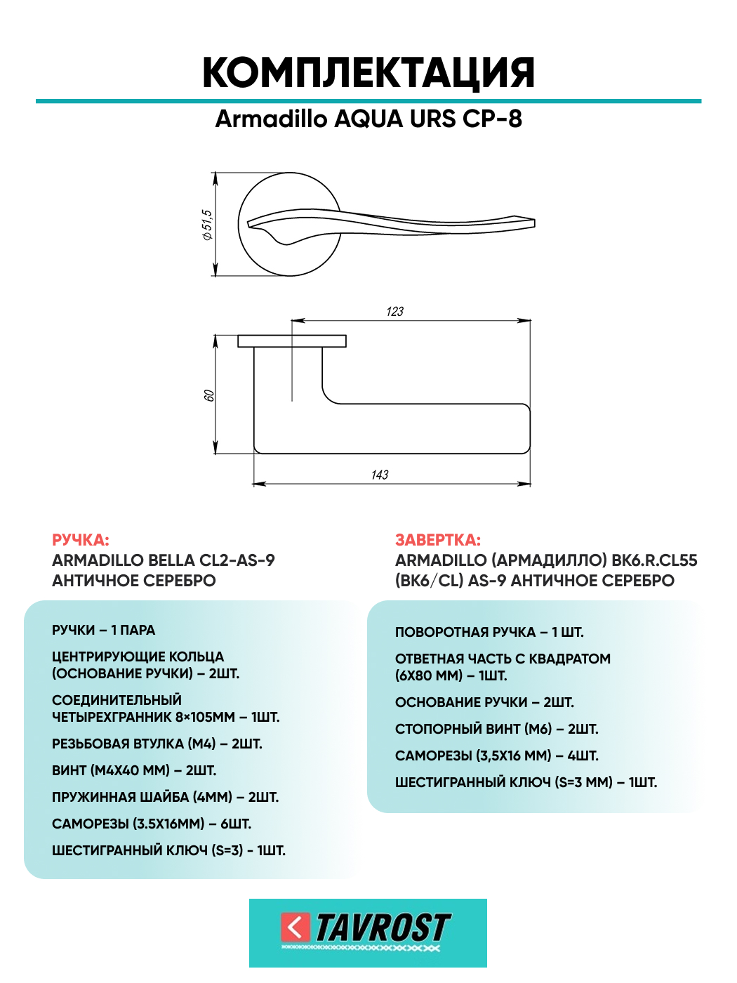 Комплект: Ручки Armadillo AQUA URS CP-8 + Завертка BK6.R.URS52 CP-8 хром