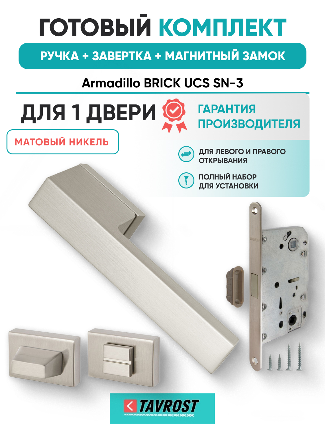 Комплект: Ручки Armadillo BRICK UCS SN-3+Завертка+Магнитный замок Fuaro/матовый никель