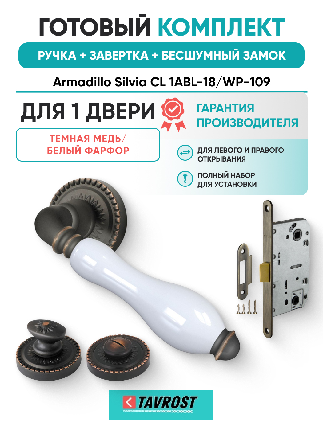 Комплект: Ручки Armadillo Silvia CL 1ABL-18/WP-109+Завертка+Бесшумный замок Fuaro/темная медь/бел.фарфор