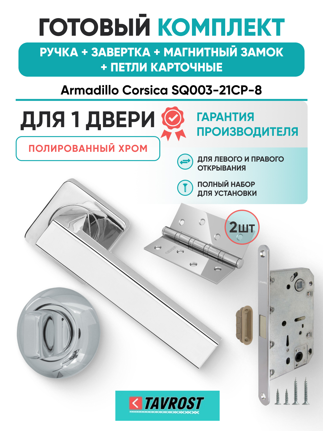 Комплект: Ручки Armadillo Corsica SQ003-21CP-8+Завертка+Магн замок и Петли Fuaro/полированный хром