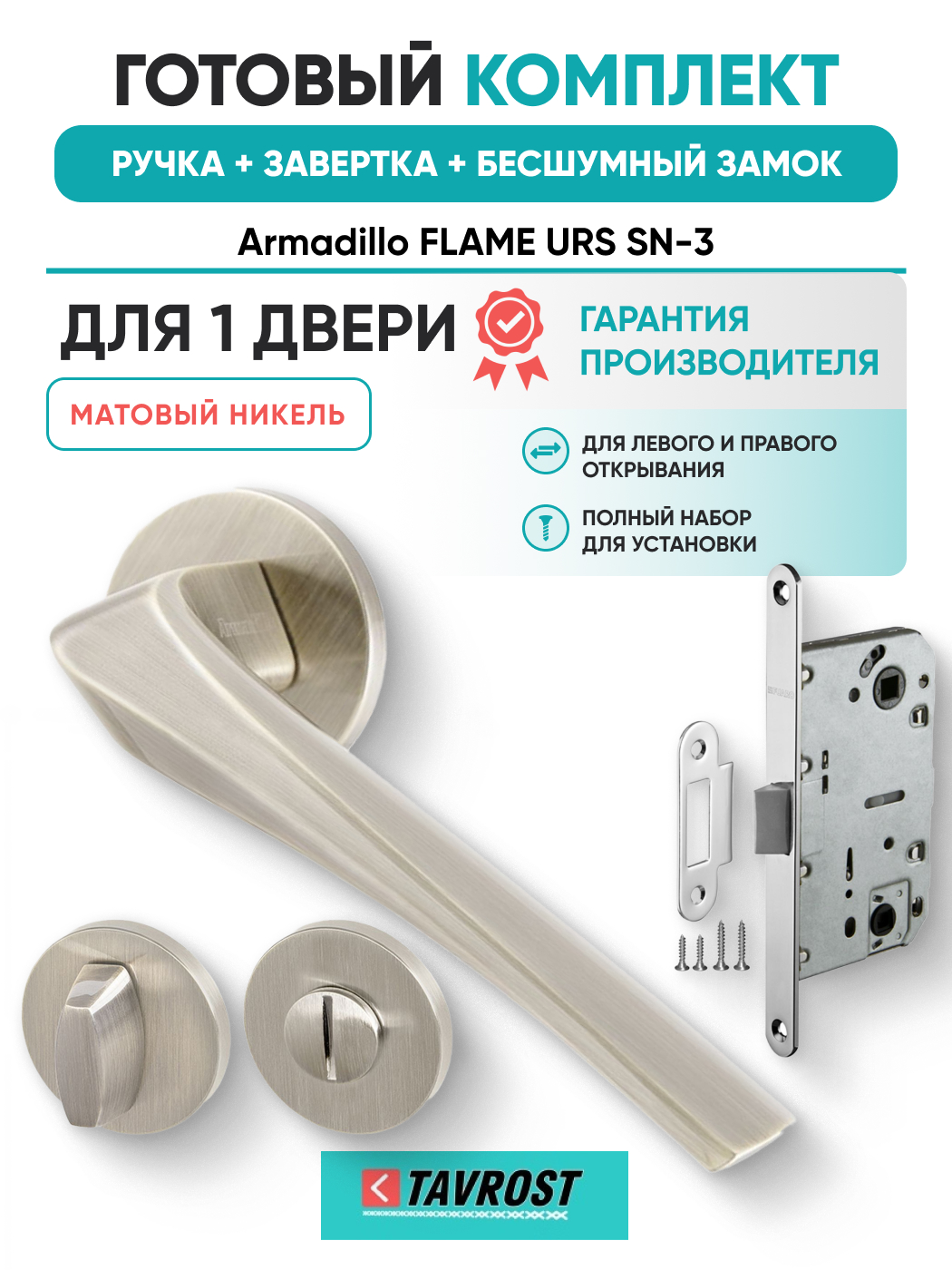 Комплект: Ручки Armadillo FLAME URS SN-3+Завертка+Бесшумный замок Fuaro/матовый никель