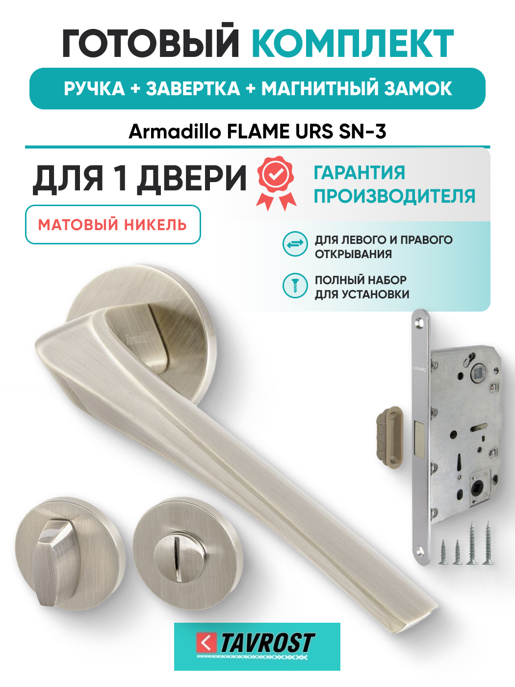 Комплект: Ручки Armadillo FLAME URS SN-3+Завертка+Магнитный замок Fuaro/матовый никель