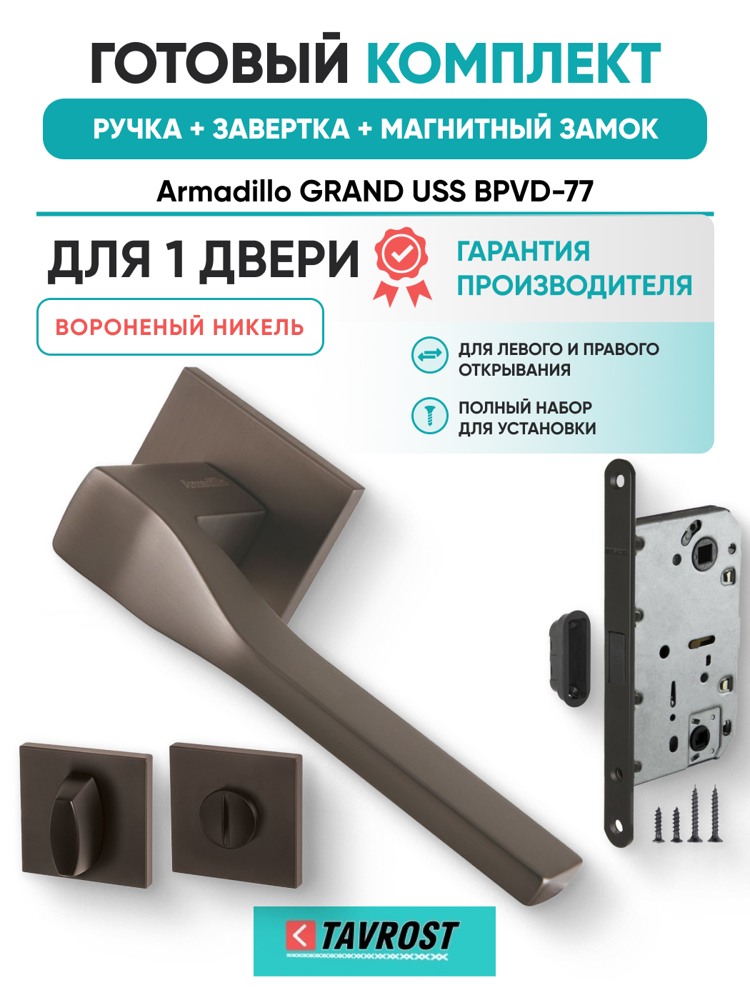 Комплект: Ручки Armadillo GRAND USS BPVD-77+Завертка+Магнитный замок Fuaro/вороненый никель