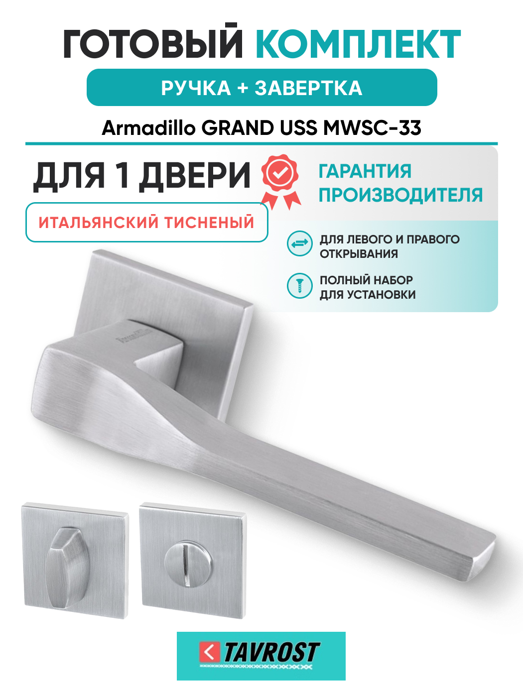 Ручка дверная межкомнатная Armadillo GRAND USS MWSC-33 итальянский тисненый:Ручка GRAND повторяет формы уникального многофункционального комплекса Raffles City Hangzhou, расположенного в одном из самых живописных городов Китая Ханчжоу. Во время проектирования архитекторы вдохновлялись движением реки Фучуньцзян, что воплотилось в плавных волнистых очертаниях зданий. Главной концепцией комплекса является "все-в-одном". В зданиях двух башен расположены гостиница, апартаменты, офисы, рестораны, помещения для отдыха, театр и вертолетная площадка. Но также внутри размещен и главный выход к метро. Именно поэтому Raffles City Hangzhou является поистине грандиозным.*GRAND (англ.) - грандиозныйДверные ручки Armadillo Slim предназначены для установки на межкомнатные двери толщиной 30-60 мм.Подходят для замков и защелок с углом поворота квадрата от 0 до 55 градусов.