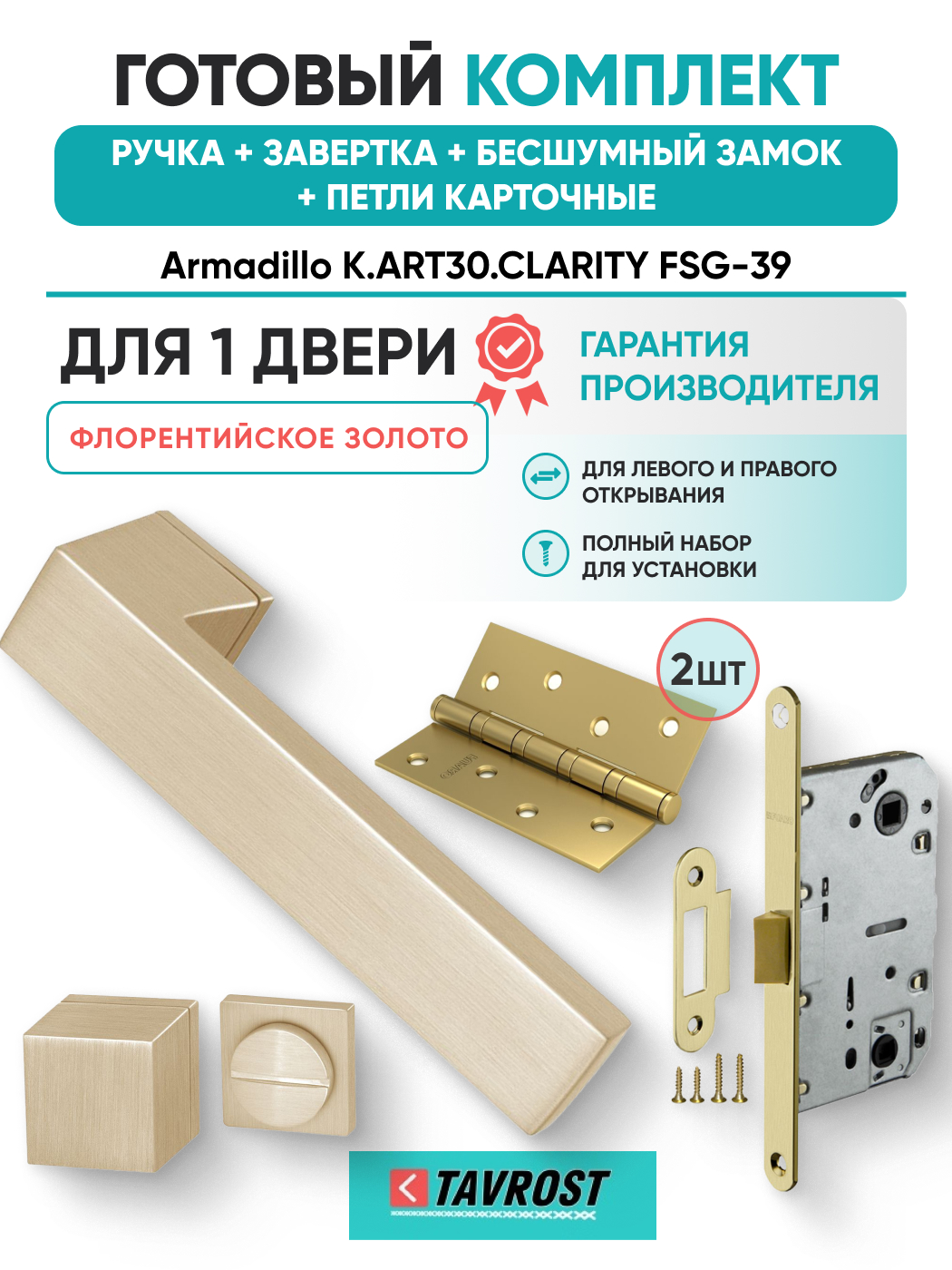 Комплект: Ручки Armadillo K.ART30.CLARITY FSG-39+Завертка+Бесшумн замок+Петли Fuaro/флорент золото