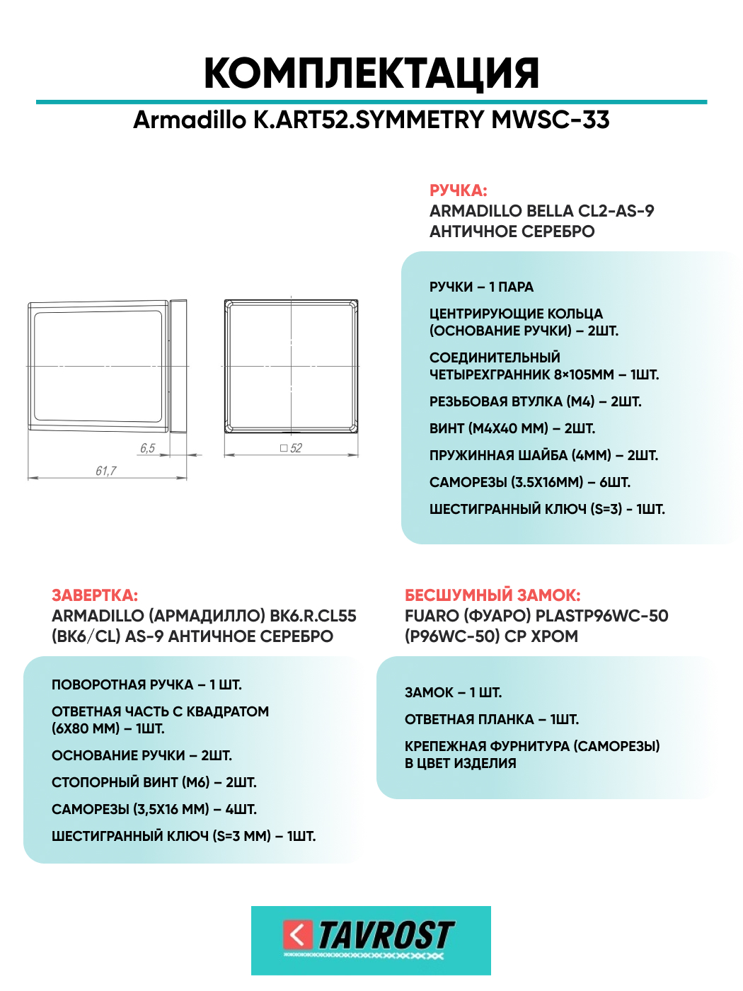 Комплект: Ручки Armadillo K.ART52.SYMMETRY MWSC-33+Завертка+Бесшумн замок Fuaro/итальянский тисненый