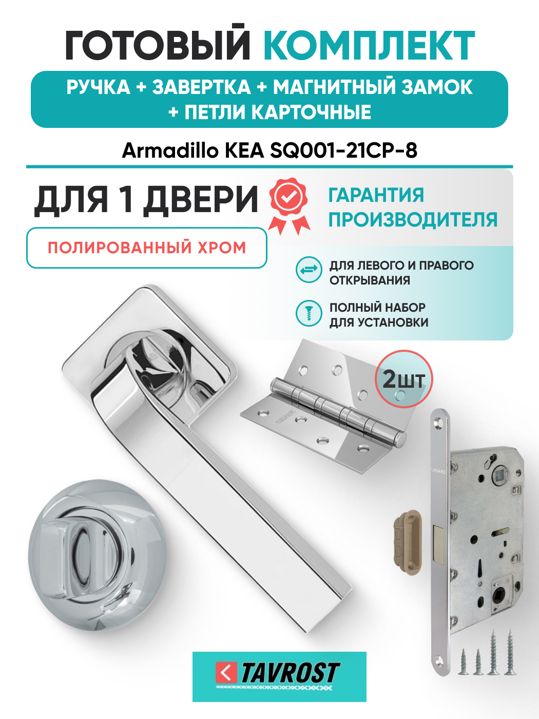 Комплект: Ручки Armadillo KEA SQ001-21CP-8+Завертка+Магнитный замок и Петли Fuaro/полированный хром