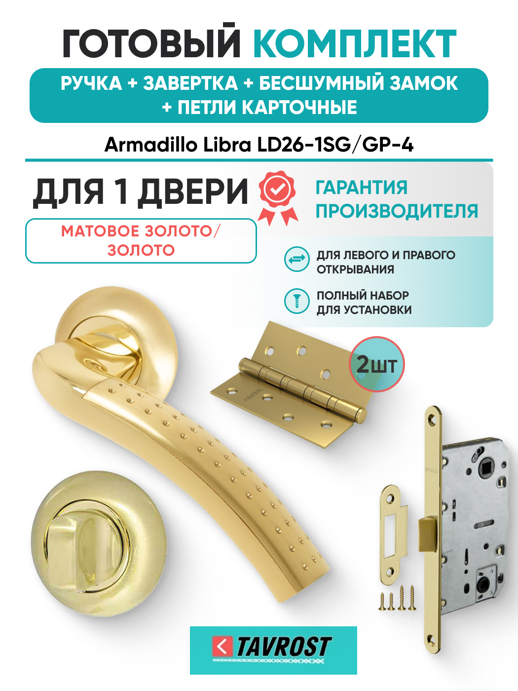 Комплект: Ручки Armadillo Libra LD26-1SG/GP-4+Завертка+Бесшумн замок и Петли Fuaro/мат золото/золото