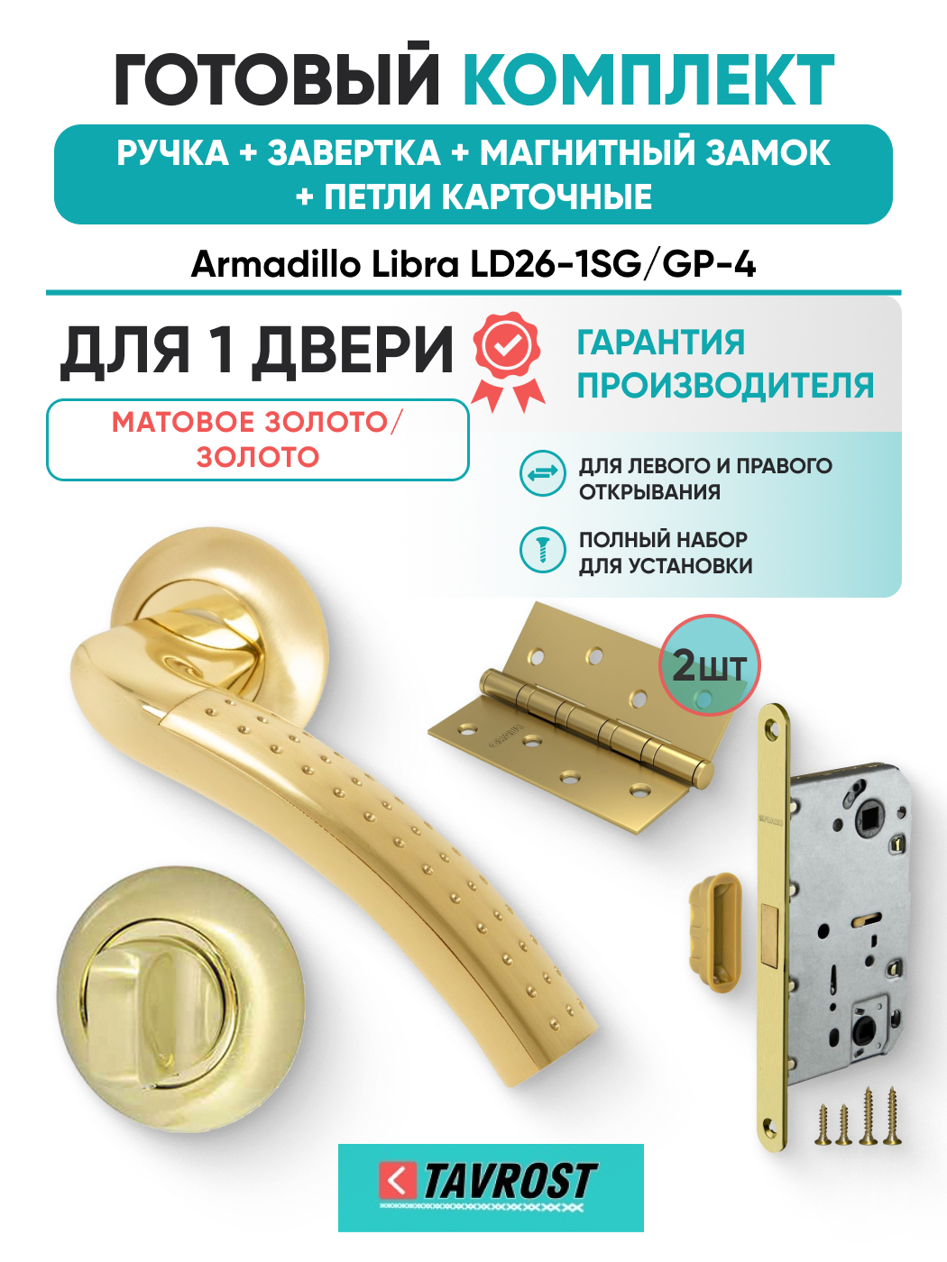 Комплект: Ручки Armadillo Libra LD26-1SG/GP-4+Завертка+Магн замок и Петли Fuaro/матов золото/золото