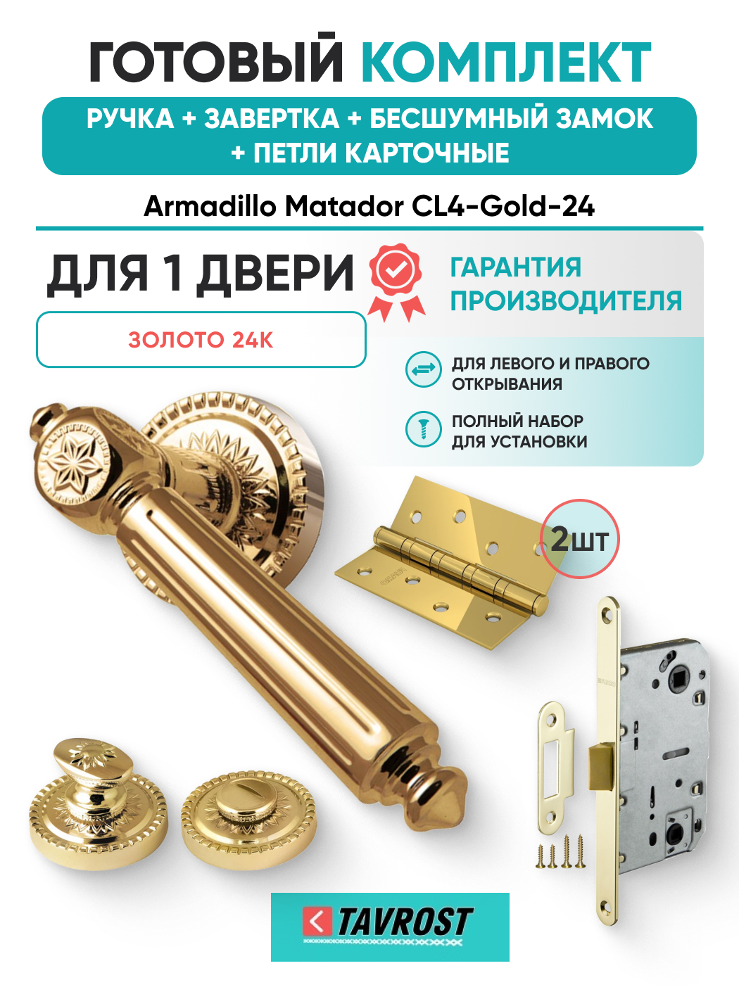 Комплект: Ручки Armadillo Matador CL4-Gold-24+Завертка+Бесшумный замок и Петли Fuaro/золото 24К