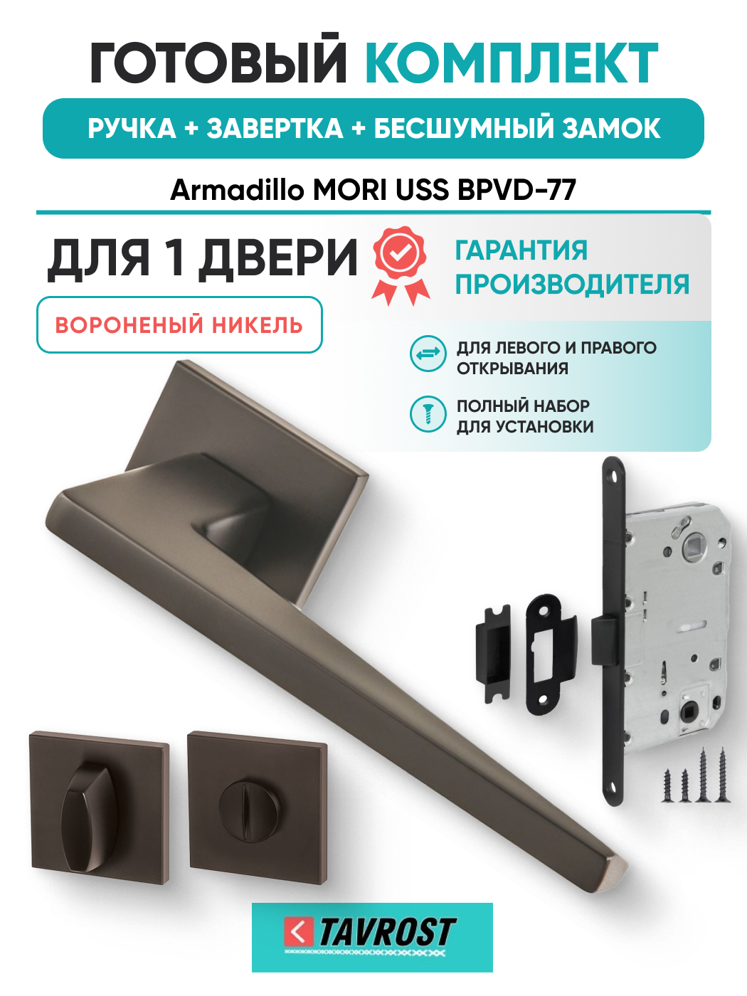 Комплект: Ручки Armadillo MORI USS BPVD-77+Завертка+Бесшумный замок Fuaro/вороненый никель